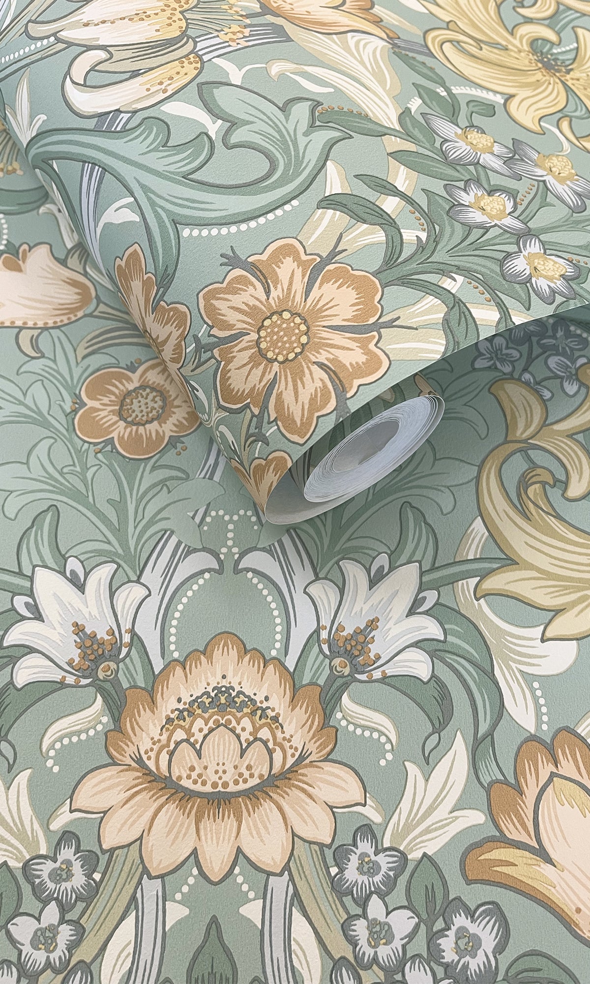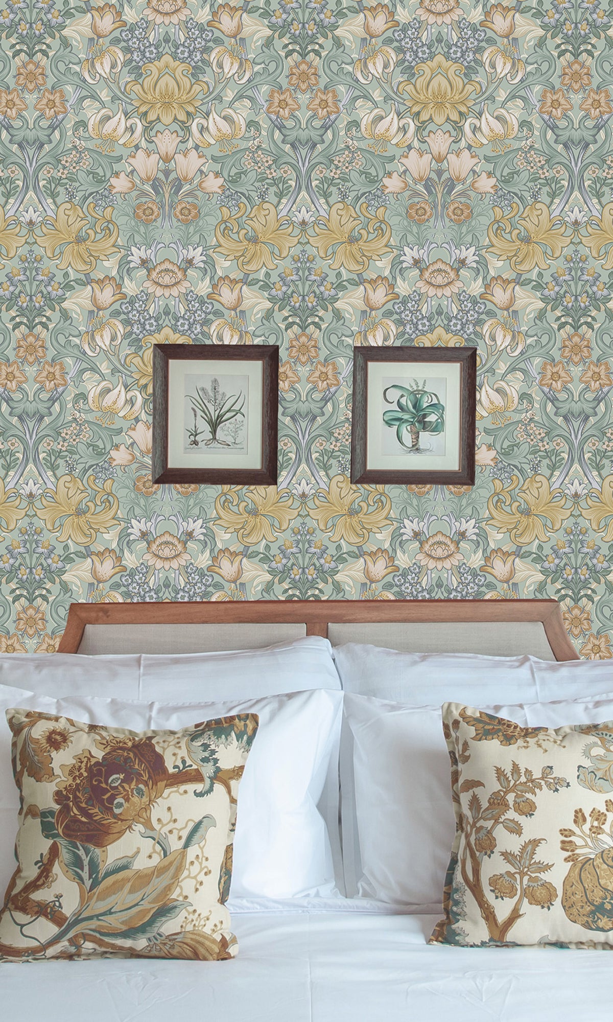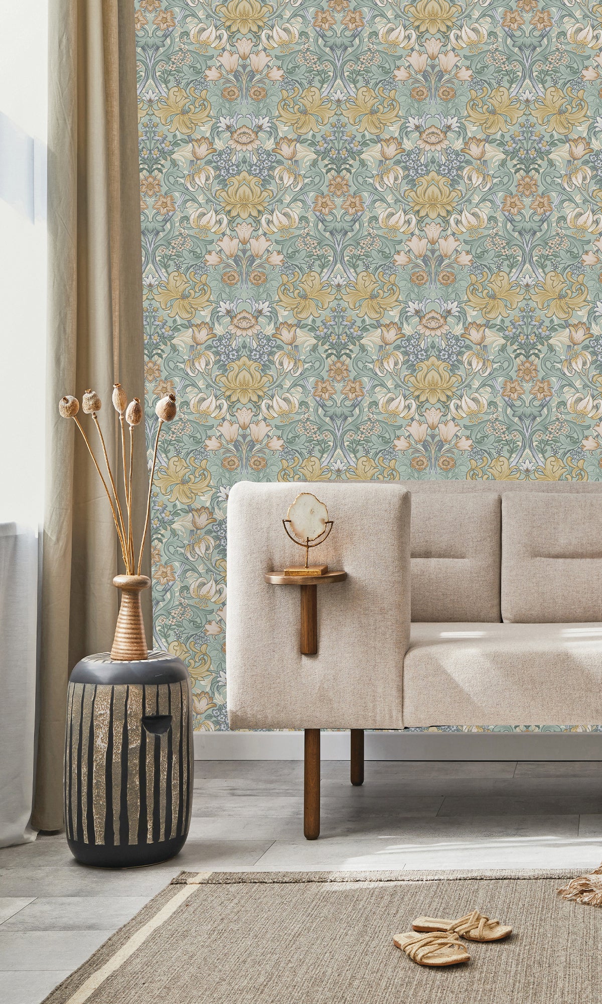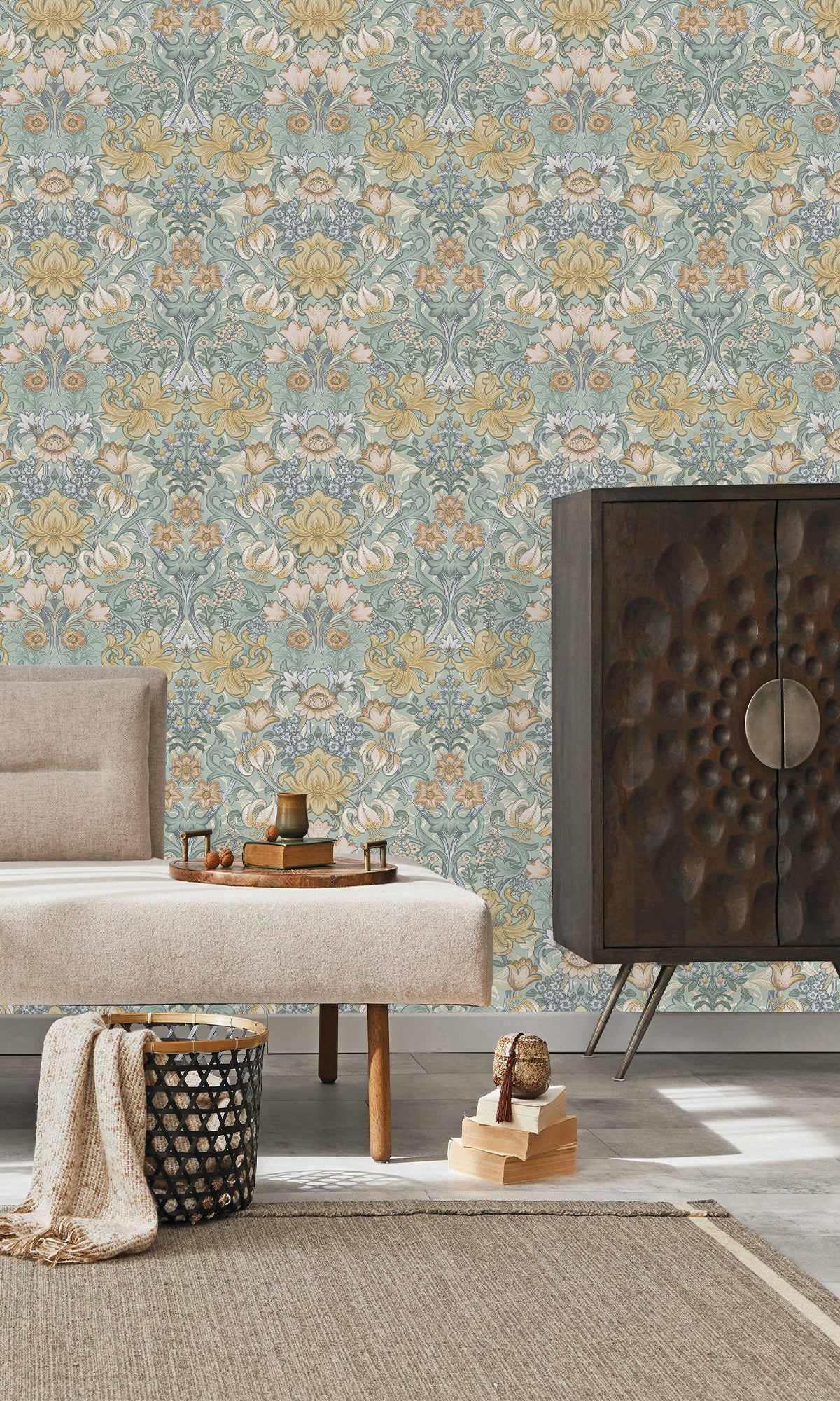 Aqua Multi Elegant Floral Damask Wallpaper R9639