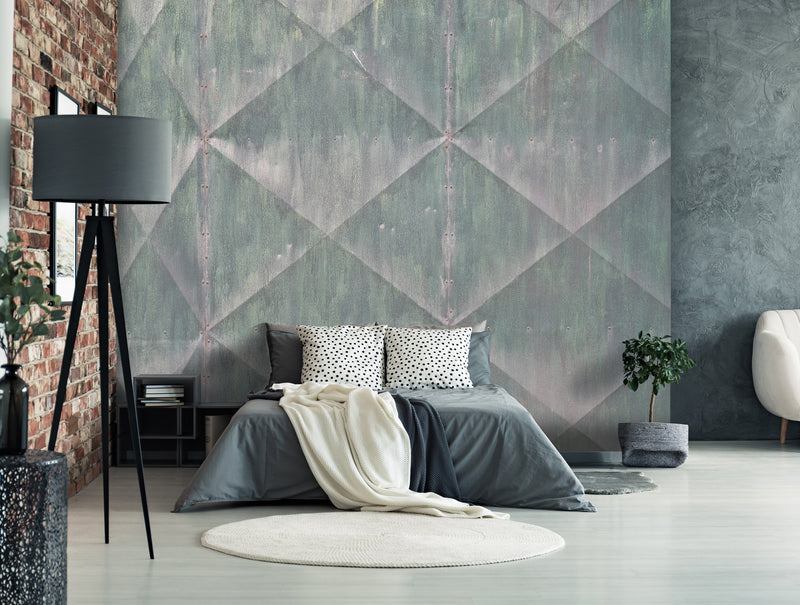 Grey Diagonal Metallic Panels Mural Wallpaper M9549