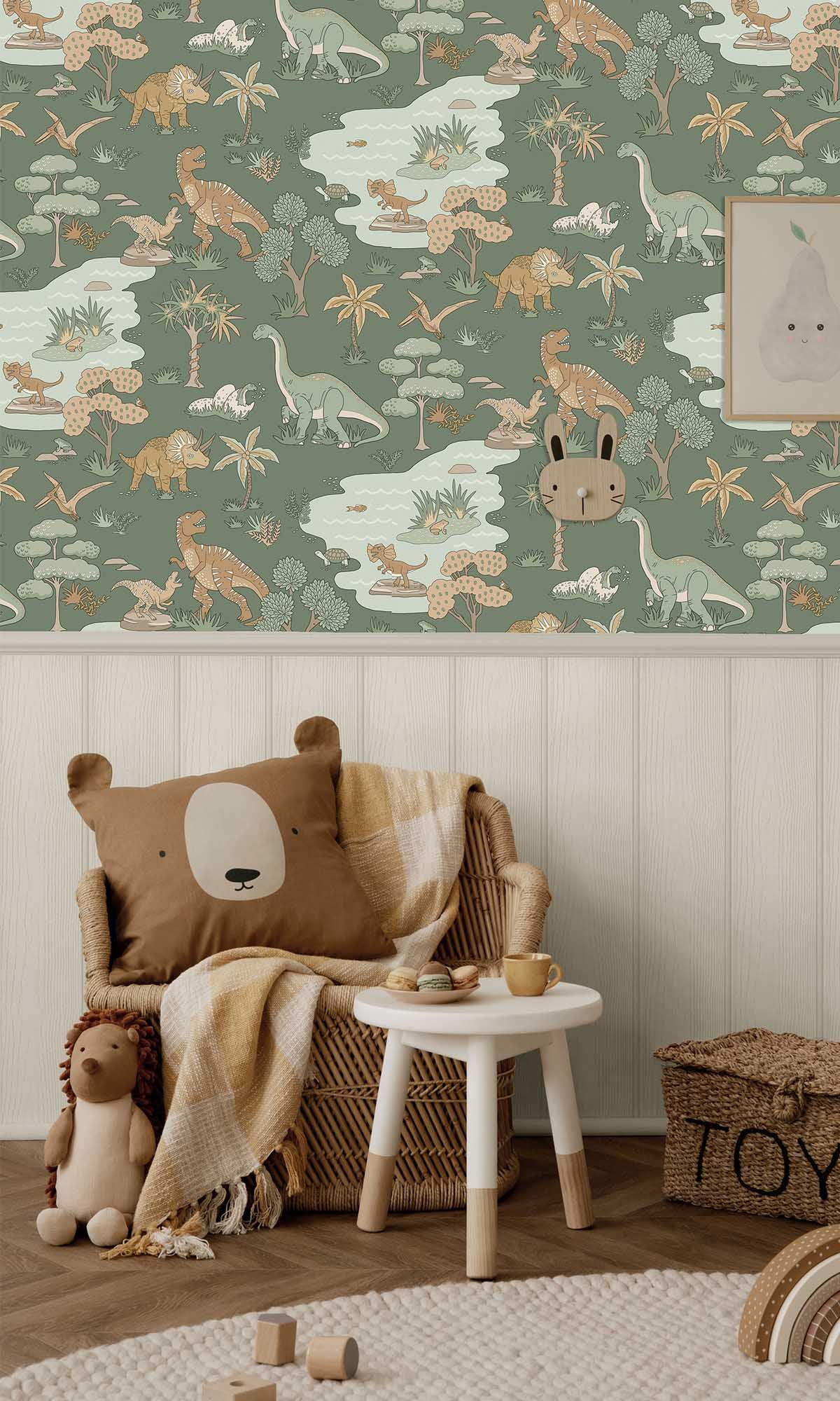 Basically, your kid gets to wake up in a world where dinosaurs and plants are BFFs. It’s not just wallpaper—it’s a full-blown adventure, right there on your wall. Fun, nature, imagination—yeah, it’s all in the mix.