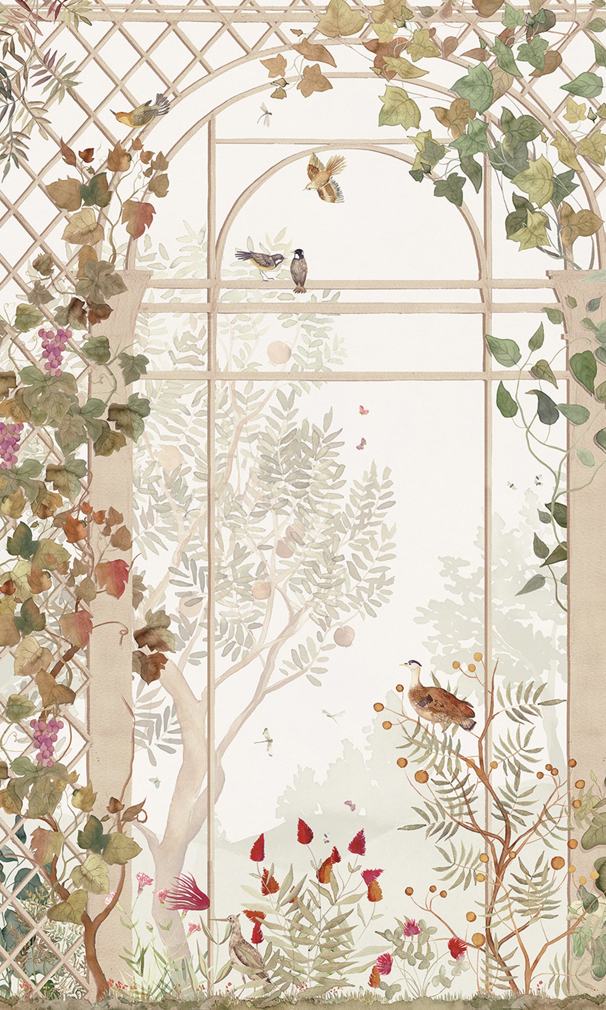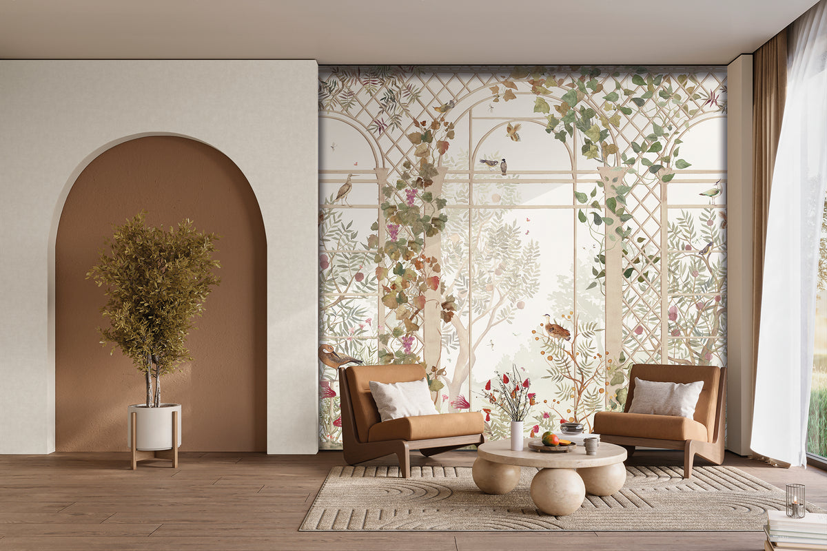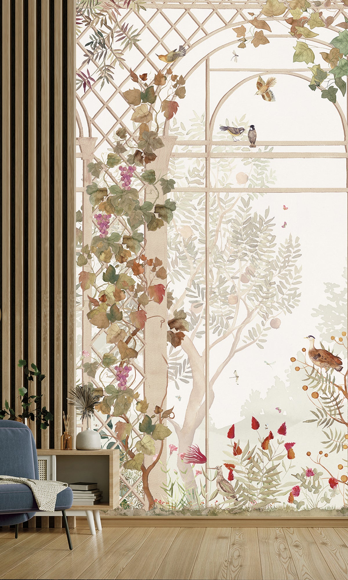 Bring the charm of a lush greenhouse into your home with our Botanical Greenhouse wallpaper, perfect for bedrooms, studies, hallways, and living rooms. This captivating design features an assortment of fruit-bearing trees, vines, and varying fowl animals, creating a vibrant, natural scene that adds a touch of whimsy and elegance to any space. Made from high-quality non-woven paper, this wallpaper ensures both durability and a sophisticated finish.