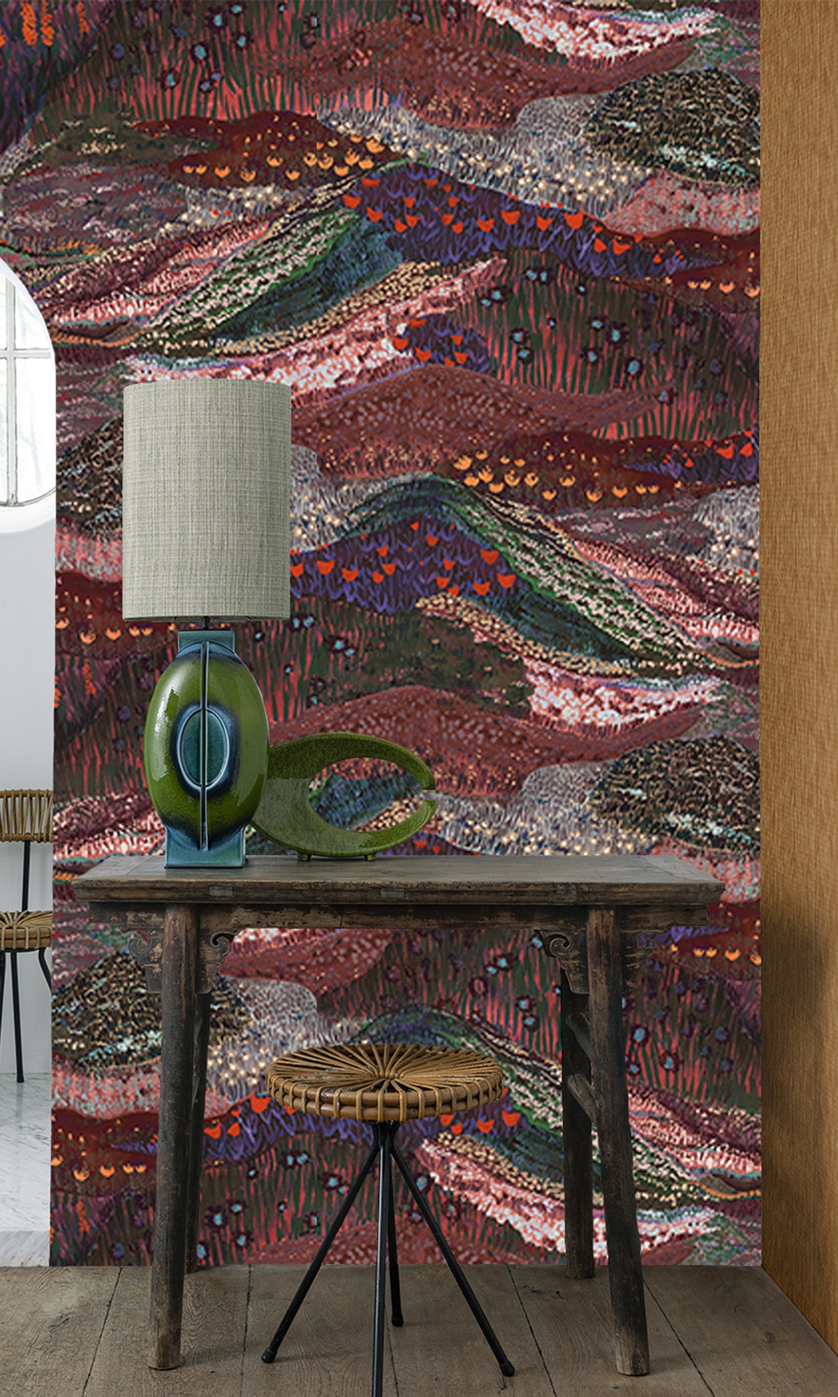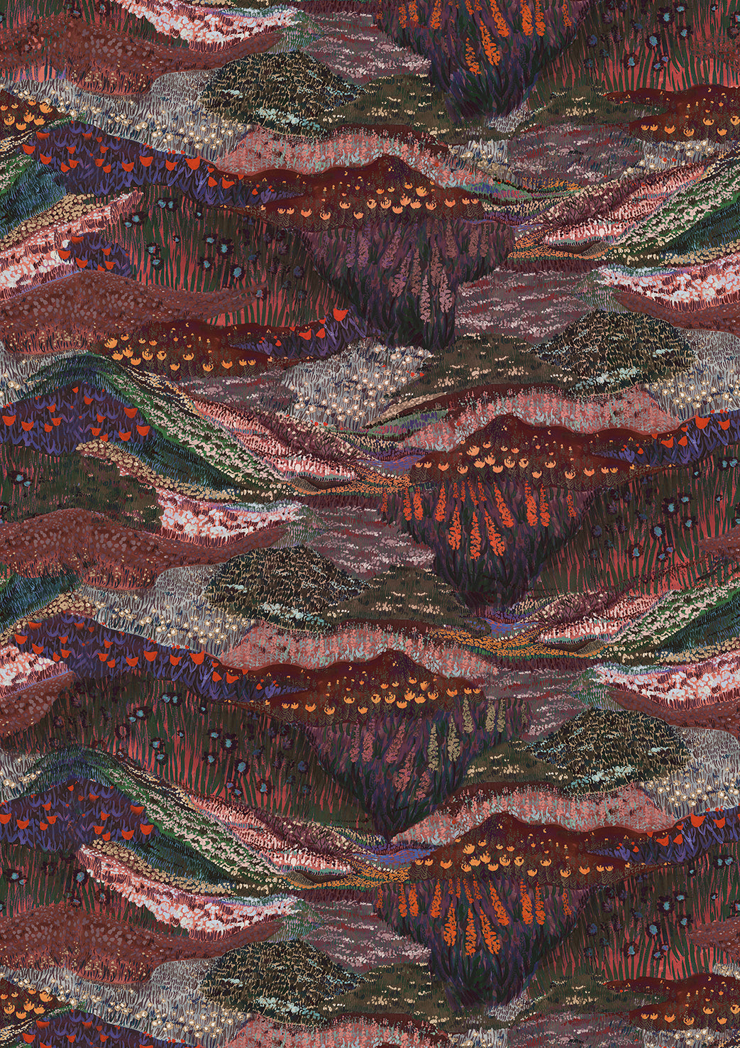 Burgundy Panoramic Valleys Wallpaper RM9028