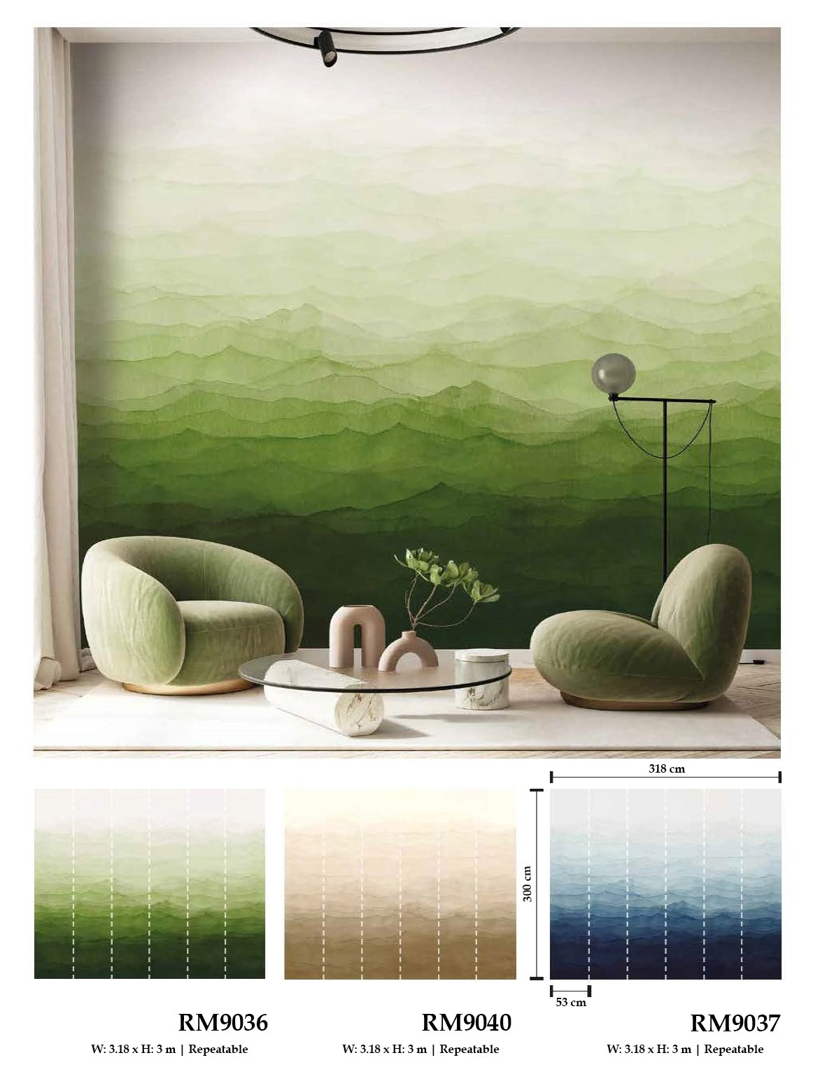 Mural standard size: 300 cm H x 318 cm W - 6 panels (53 cm each panel). Repeatable in width.