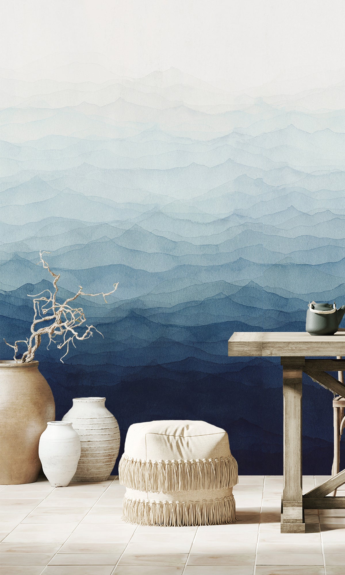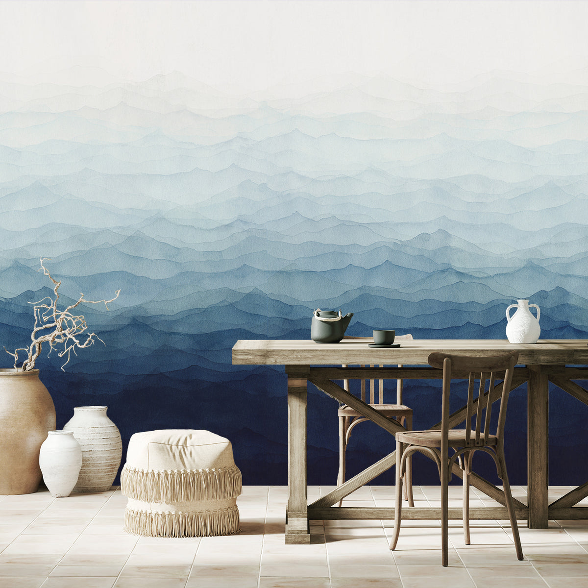 Bring a touch of artistic elegance to your home with our Watercolor Horizon wallpaper, perfect for bedrooms, studies, hallways, and living rooms. This beautiful design captures an interpretation of sea waves near the horizon through a watercolor painting, creating a serene and calming atmosphere in any room. Made from high-quality non-woven paper, this wallpaper combines durability with a sophisticated finish.