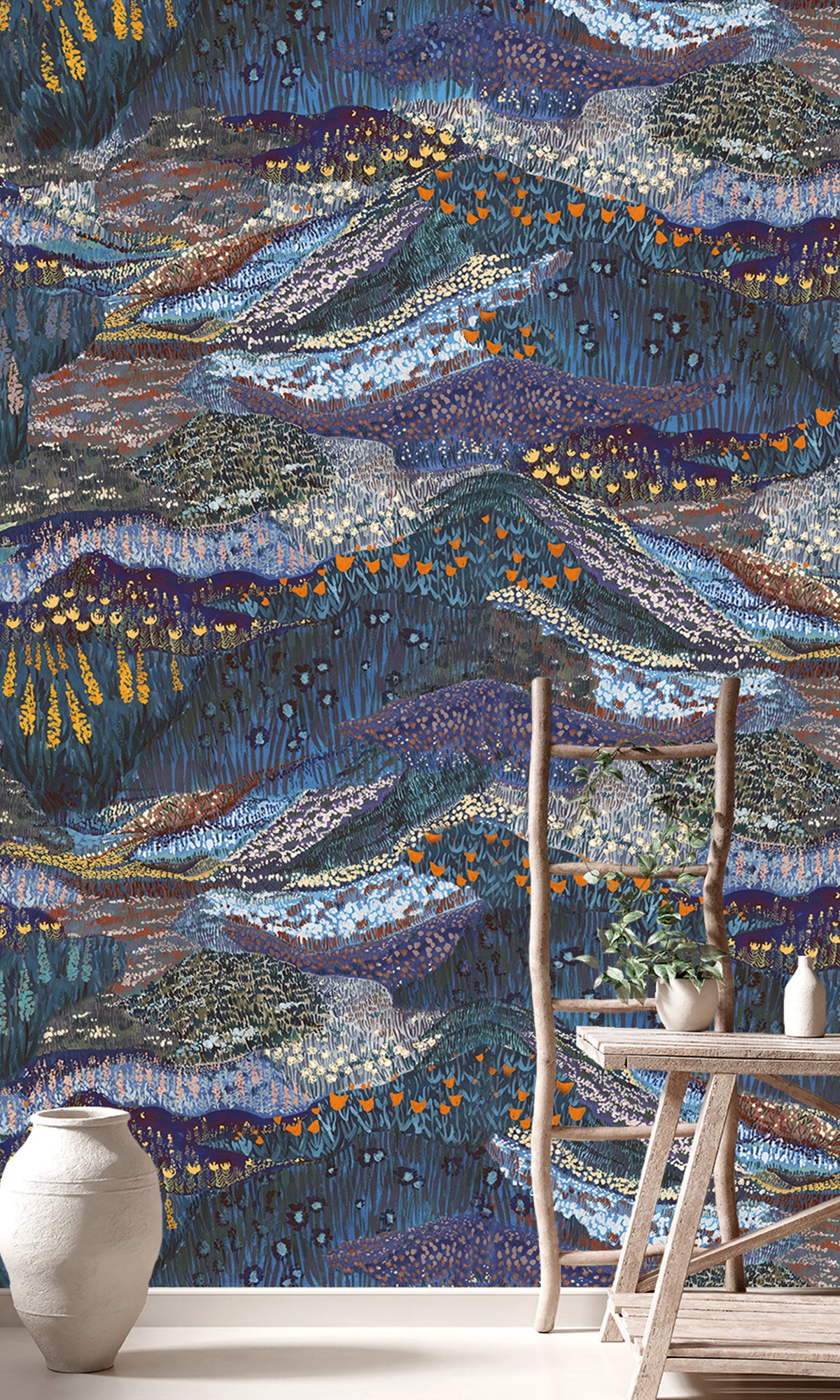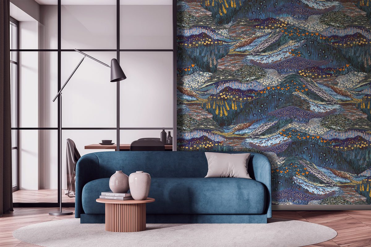 Keeping it looking fresh is easy with its lightly scrubbable surface—just use a damp cloth for simple cleaning. With good lightfastness, the vibrant valley design will stay bright even in well-lit rooms. Whether you’re creating a serene bedroom retreat, a sophisticated study, or a welcoming hallway, our Panoramic Valleys wallpaper adds a touch of natural elegance to your home. Enjoy the perfect blend of style and practicality with this stunning wallpaper.