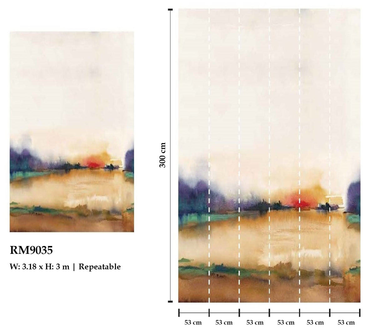 Mural standard size 300 cm H x 318 cm W - 6 Panels (53 cm each panel). Repeatable in width.