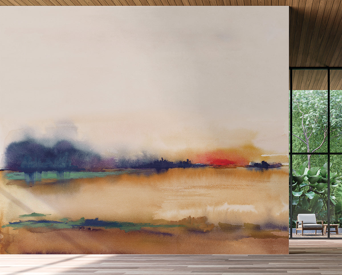 Bring the serene beauty of a sunset into your home with our Abstract Sunset wallpaper, perfect for bedrooms, studies, hallways, and living rooms. This stunning design features a watercolor painting of a pond surrounded by nature during sunset, creating a tranquil and picturesque scene. Made from high-quality non-woven paper, this wallpaper combines durability with a luxurious feel.
