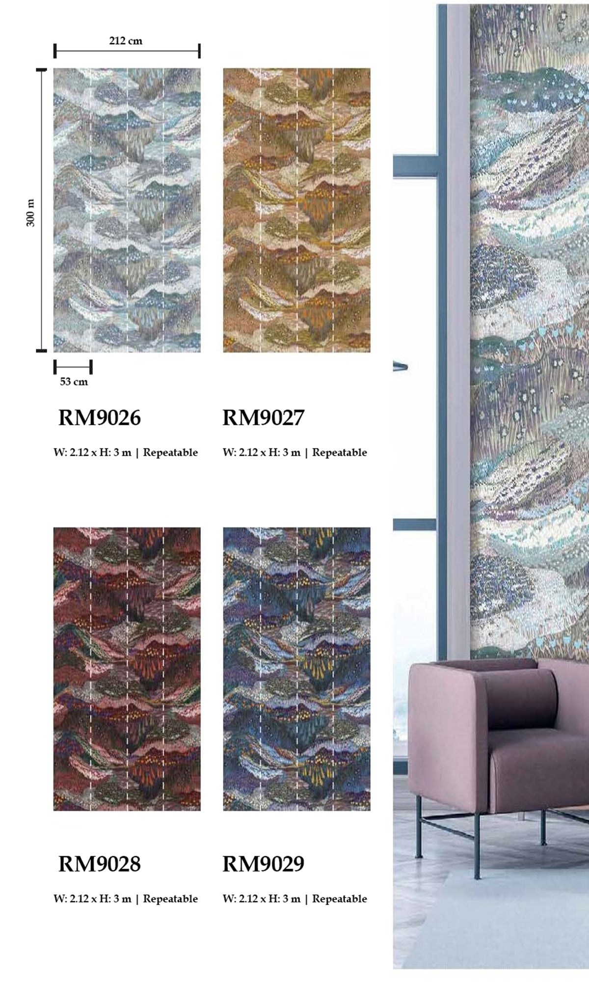 Mural standard size 300 cm H x 212 cm W - 4 Panels (53 cm each panel). Repeatable in width.