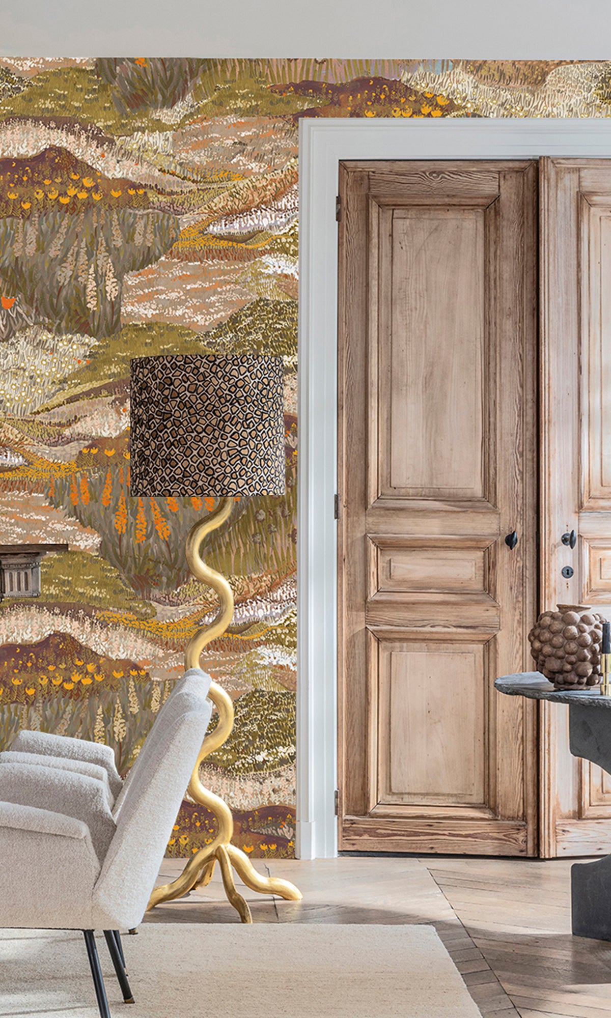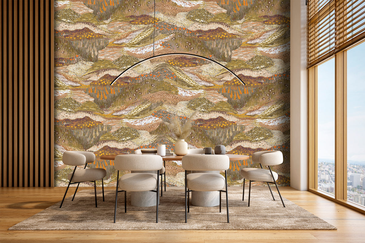 Keeping it looking fresh is easy with its lightly scrubbable surface—just use a damp cloth for simple cleaning. With good lightfastness, the vibrant valley design will stay bright even in well-lit rooms. Whether you’re creating a serene bedroom retreat, a sophisticated study, or a welcoming hallway, our Panoramic Valleys wallpaper adds a touch of natural elegance to your home. Enjoy the perfect blend of style and practicality with this stunning wallpaper.