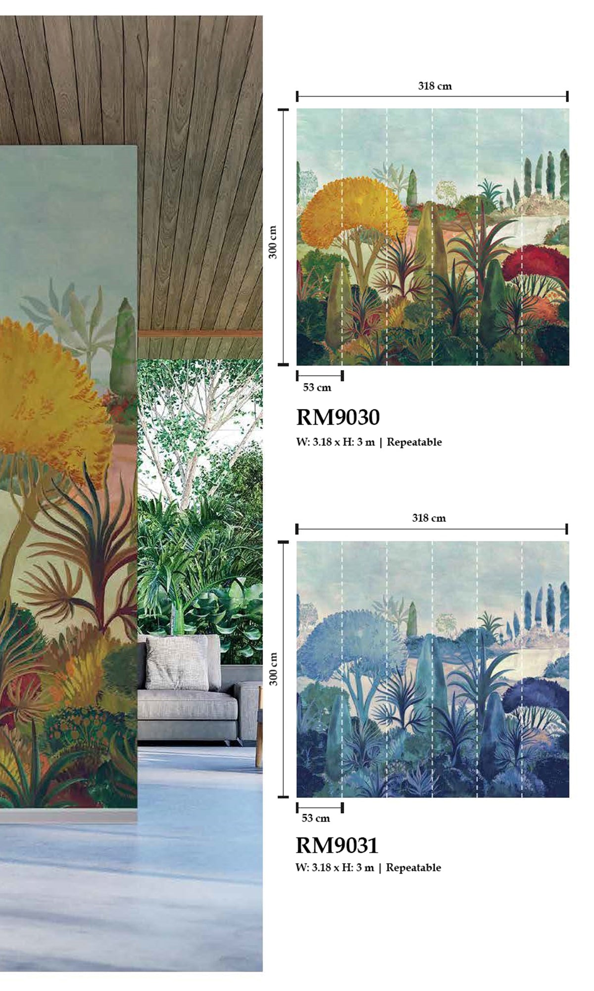 Mural standard size 300 cm H x 318 cm W - 6 Panels (53 cm each panel). Repeatable in width.