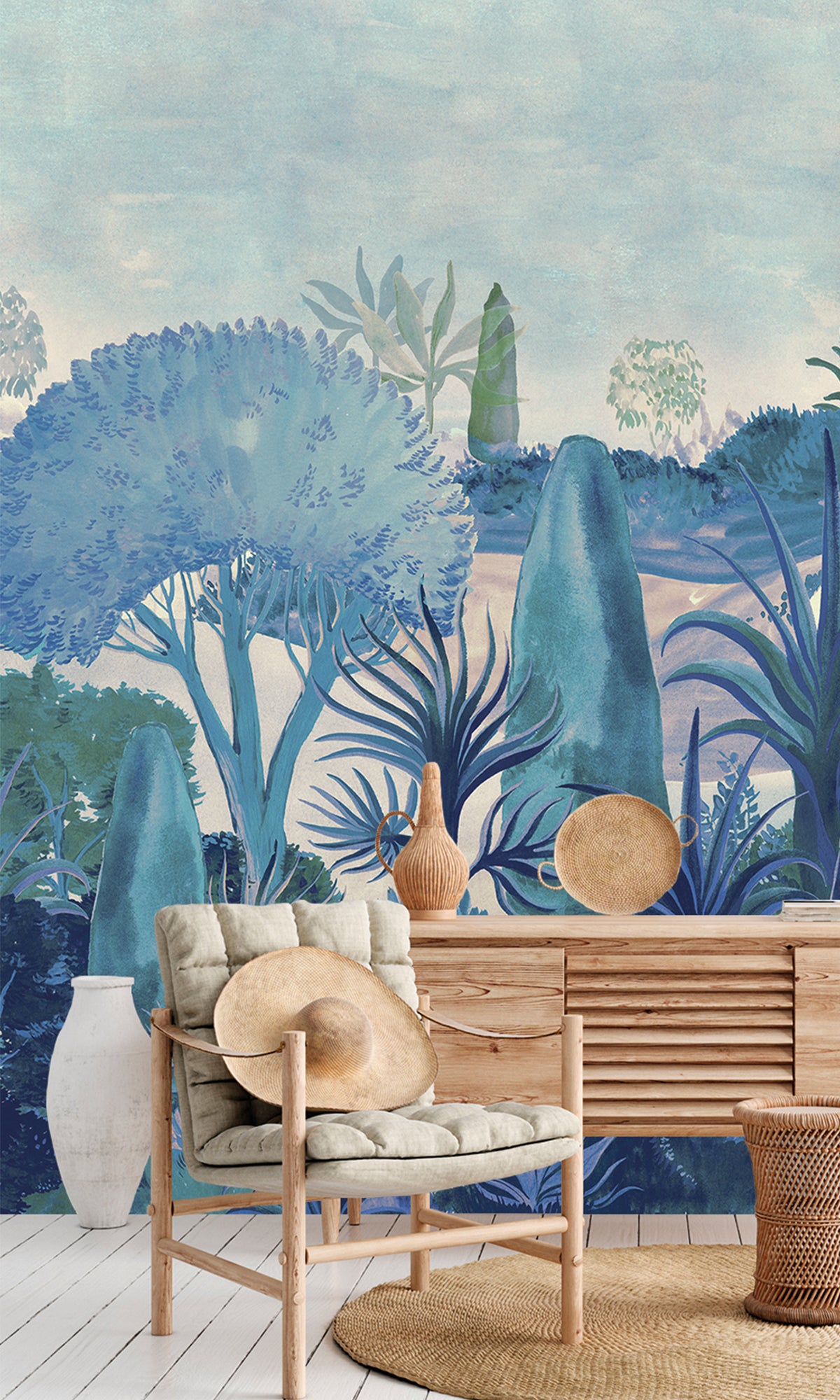 Bring the outdoors inside with our Botanical Landscape wallpaper, perfect for bedrooms, studies, hallways, and living rooms. This captivating design features an assortment of trees and shrubs in varying colors, creating a serene and natural ambiance in any room. Made from high-quality non-woven paper, this wallpaper offers both durability and a luxurious feel.