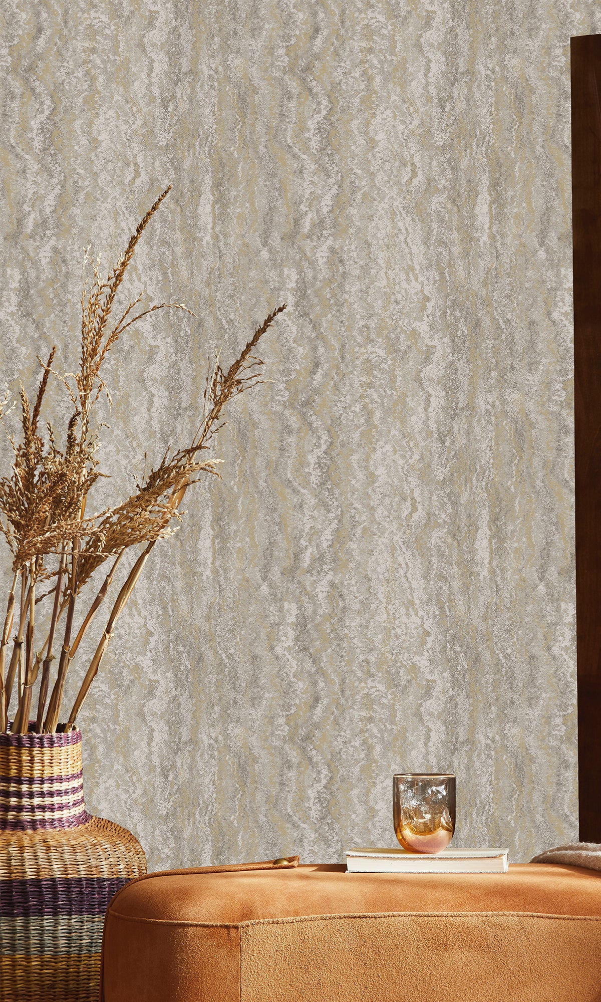 Inspired by the organic beauty of marble formations, this wallpaper features an intricate striation pattern that mimics the natural flow of stone. Its raised texture enhances the design, recreating the uneven surface of real marble for added depth and realism. Metallic flecks bring a modern touch, adding a subtle shimmer that elevates any space with contemporary luxury.