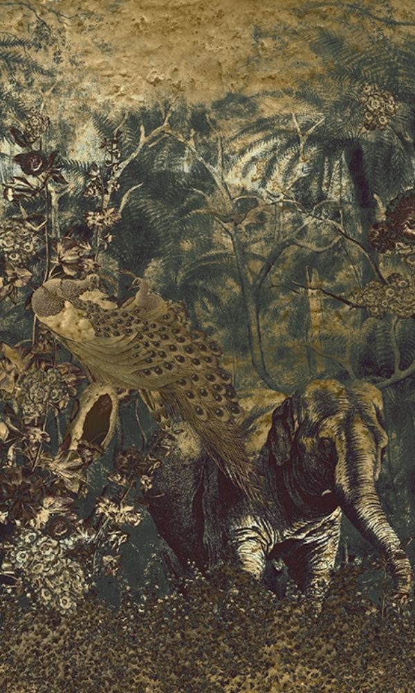 Beige Peacock Forest Tropical Wallpaper Mural M1067