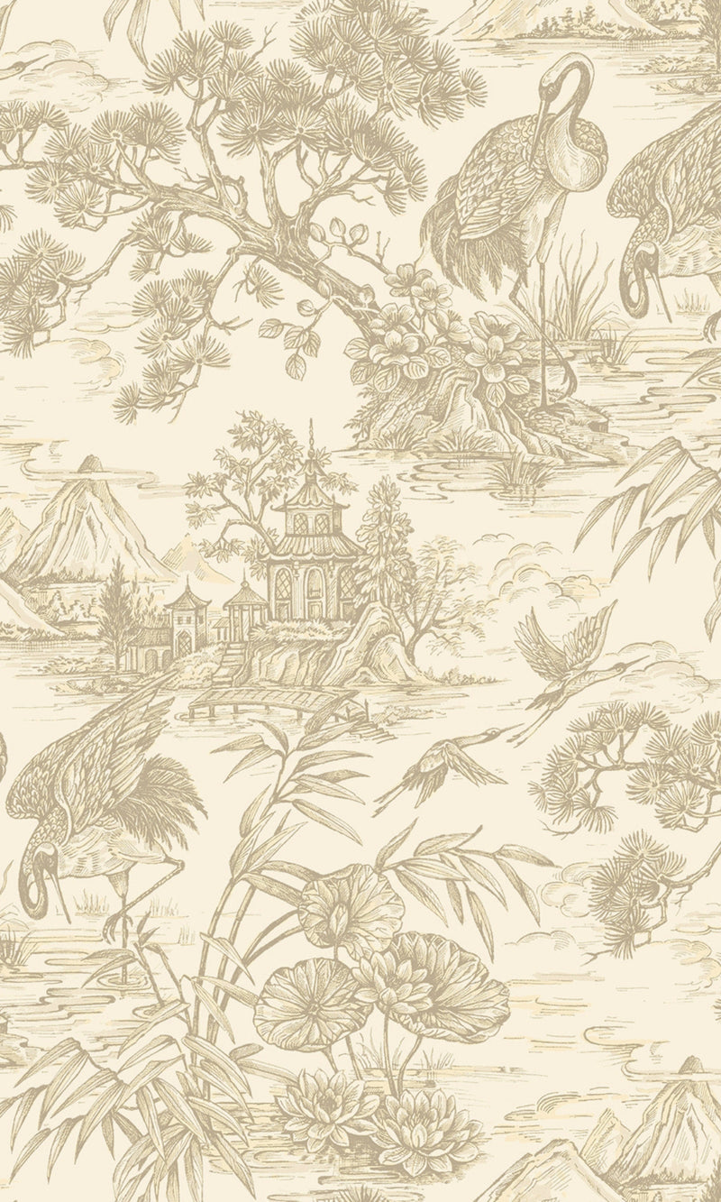 Cream Majestic Crane Tropical Wallpaper R8968
