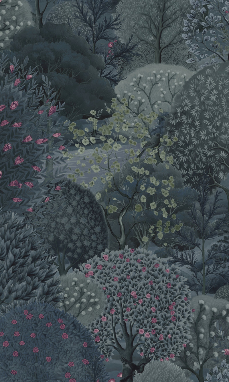 Navy Berry Enchanted Lush Landscape Tropical Wallpaper R8994