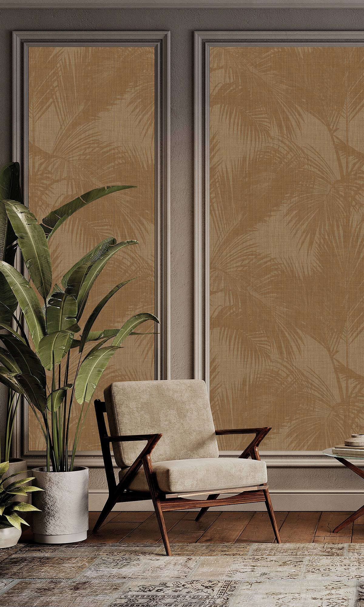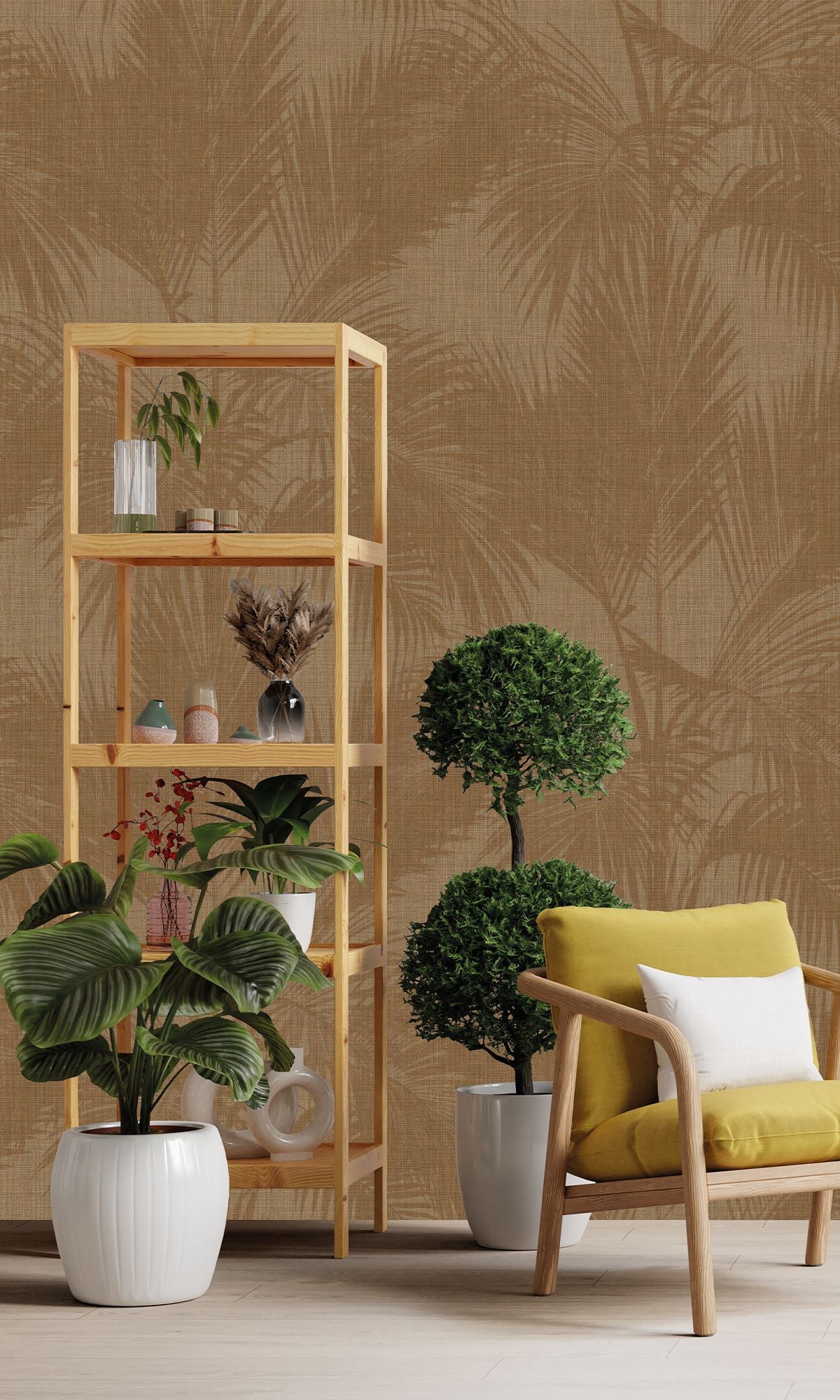Corkboard & Cocoa Brown Silhouetted Palm Trees Wallpaper RM9061