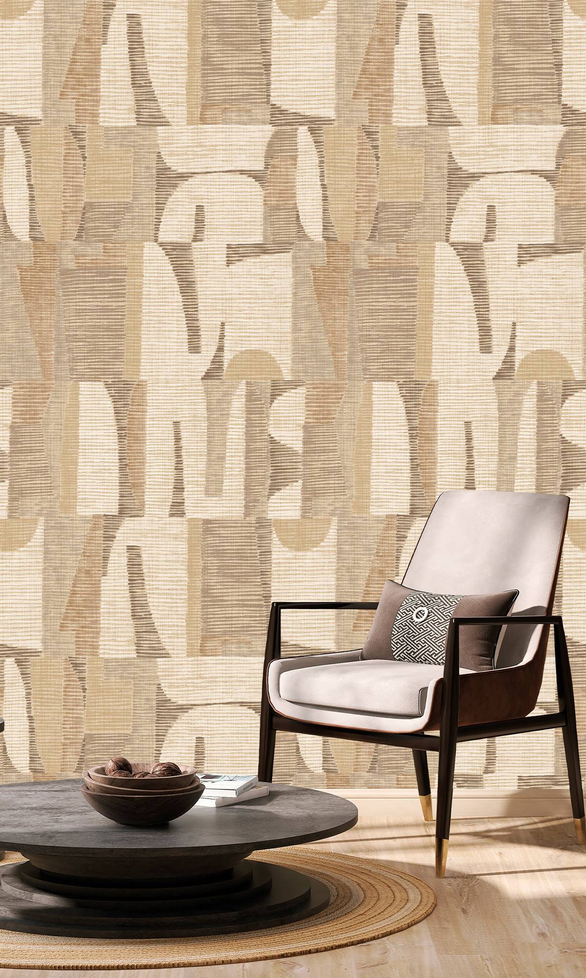 Esplanade & Pastel Brown Ethnic Print Collage Wallpaper RM9053