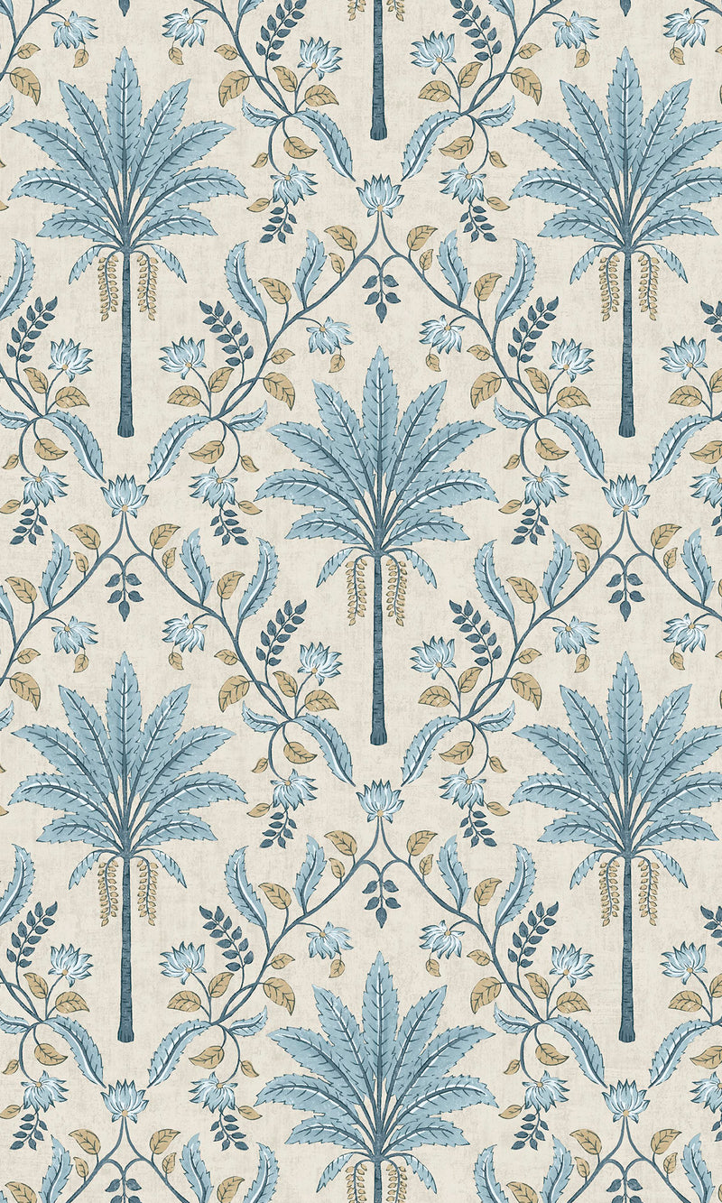 Blue Trellis and Focal Palm Trees Wallpaper R9592