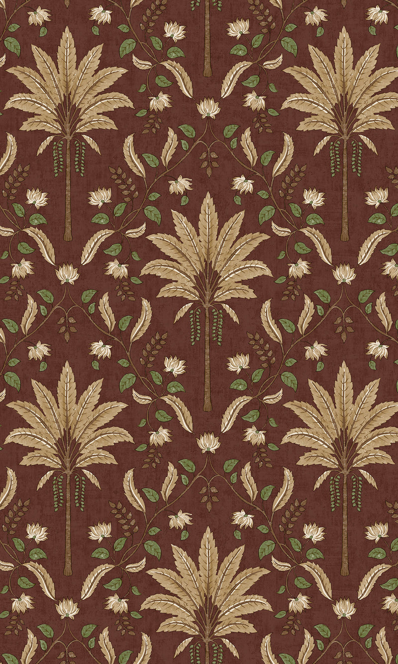 Maroon Trellis and Focal Palm Trees Wallpaper R9593