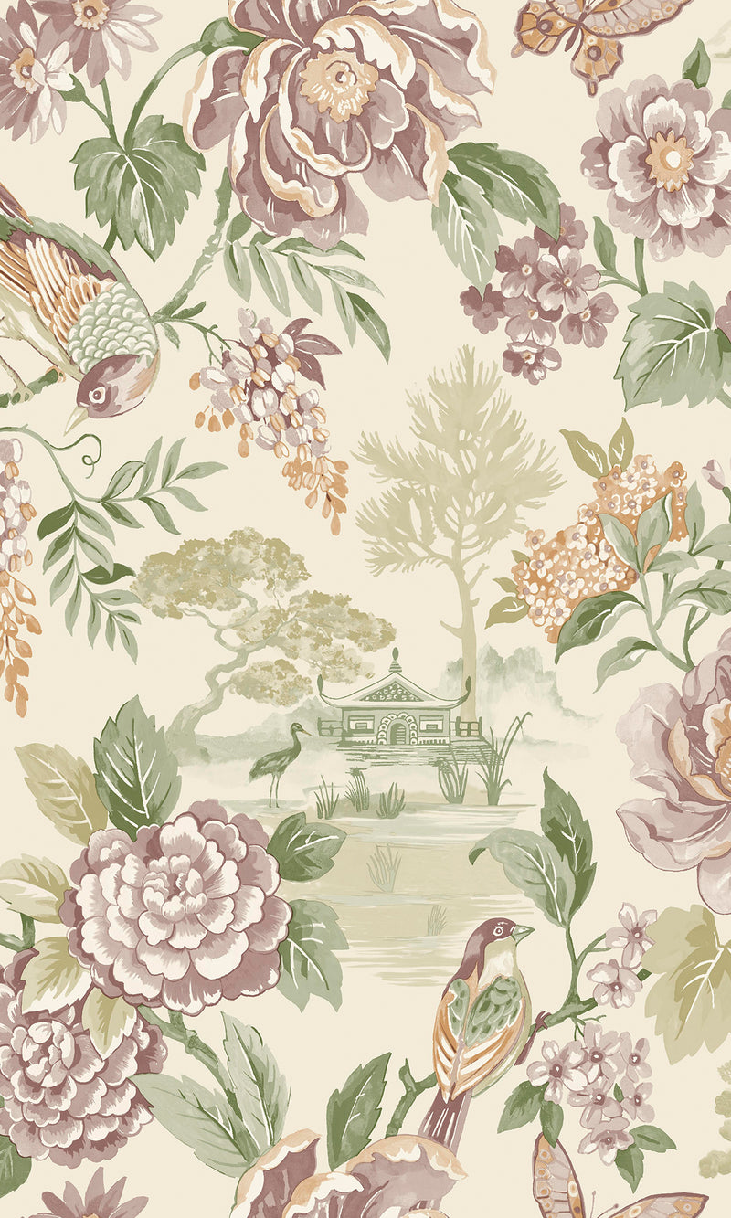 Pink Hand Painted Imperial Gardens Wallpaper RM9044