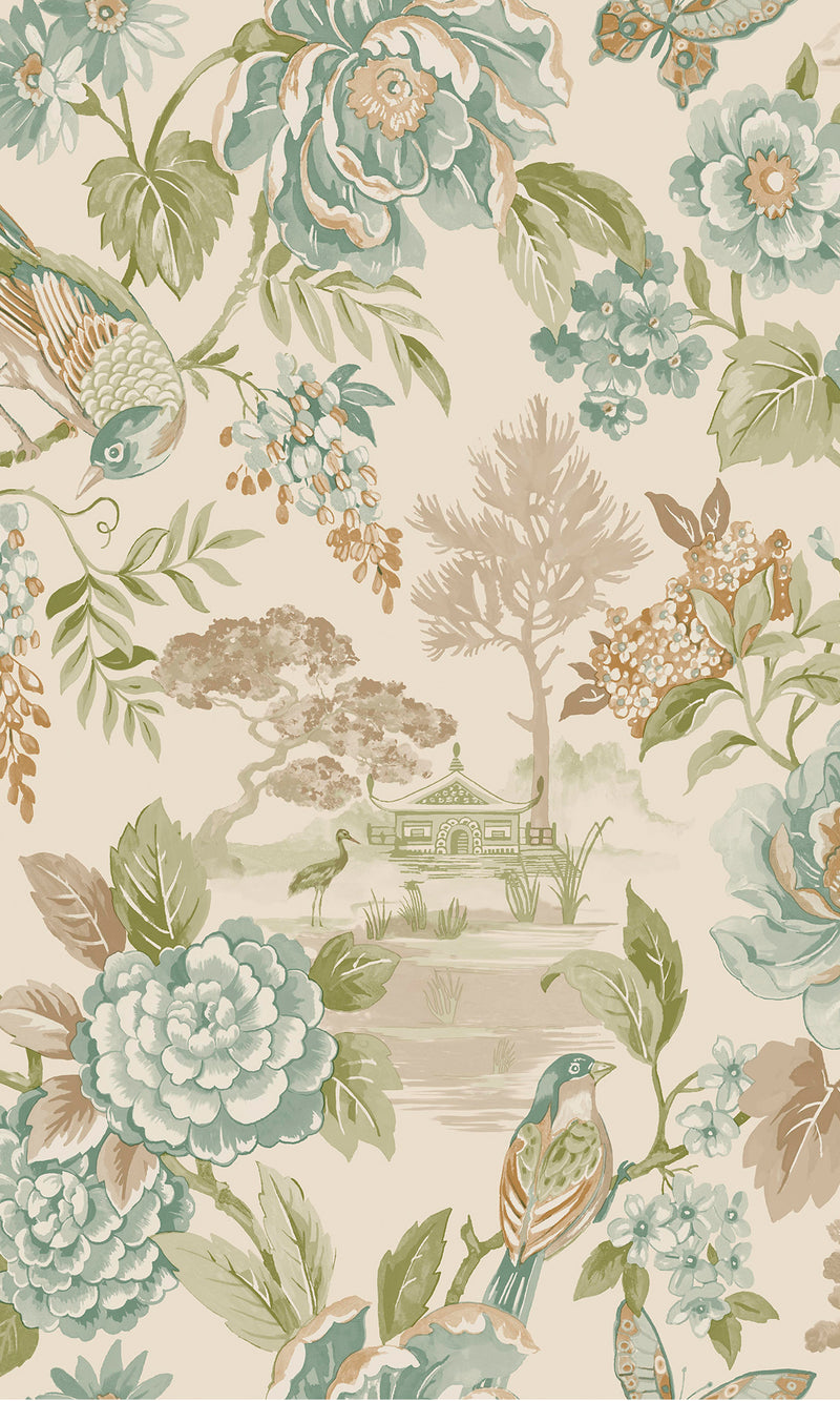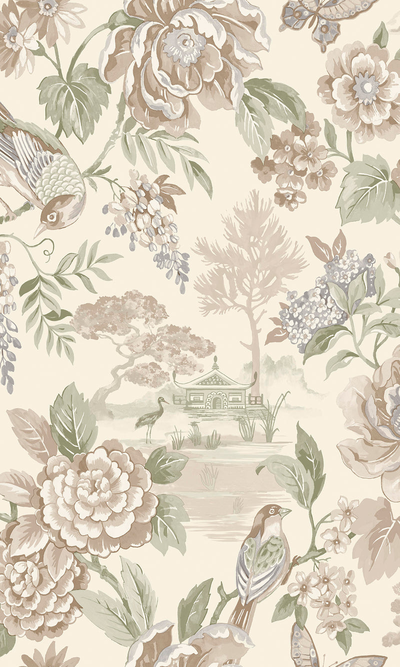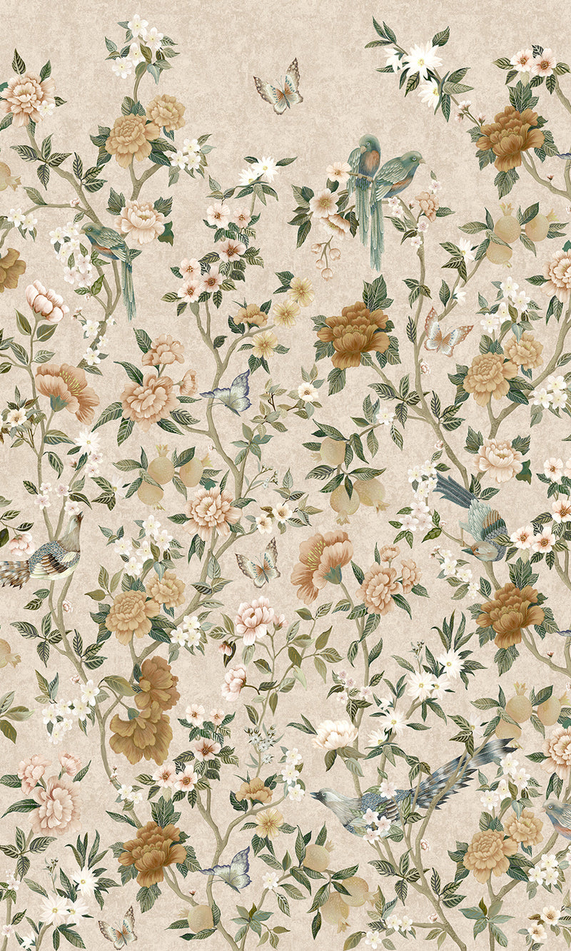 Neutral Hand Painted Imperial Gardens Wallpaper RM9043