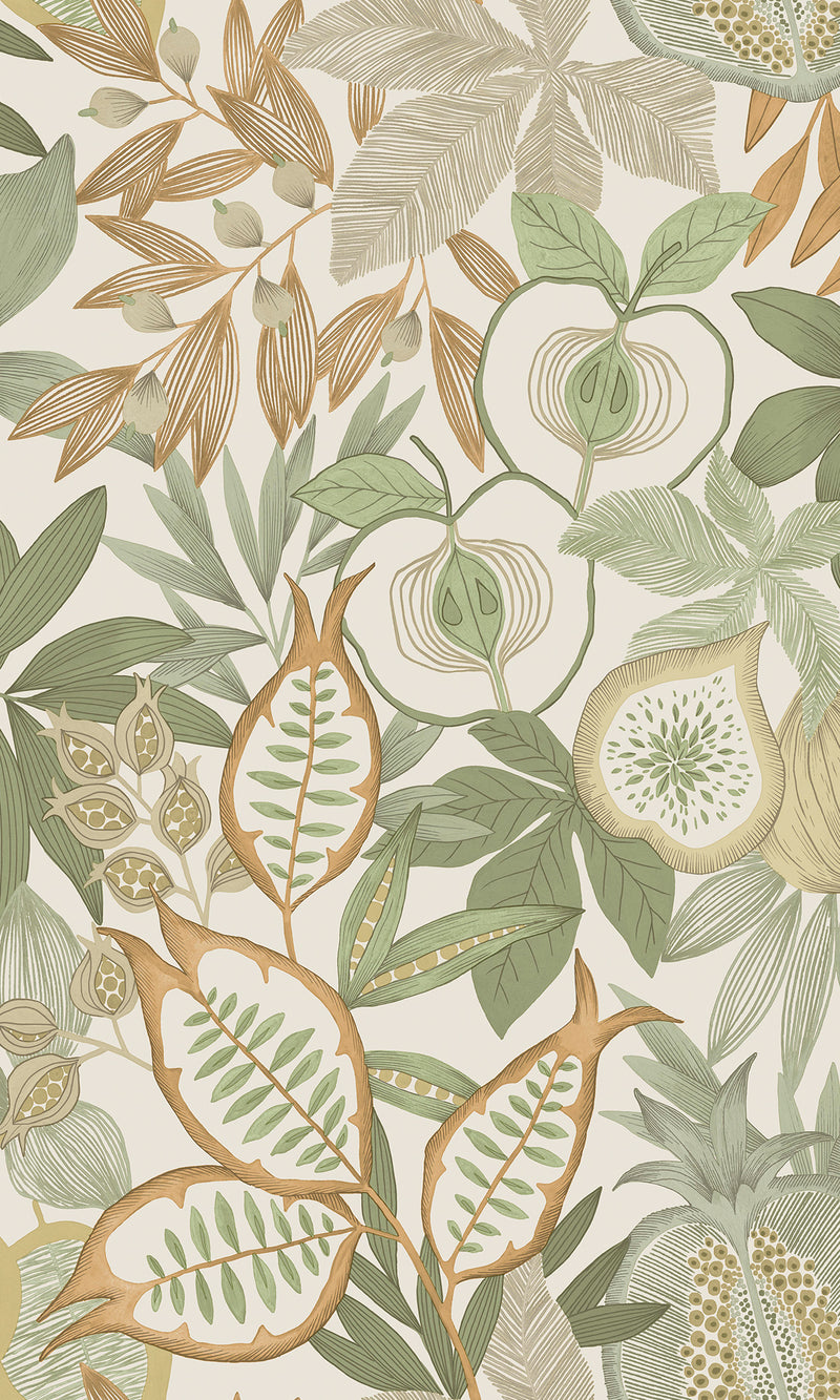 Green/Orange Vibrant Botanical Foliage Wallpaper R9611