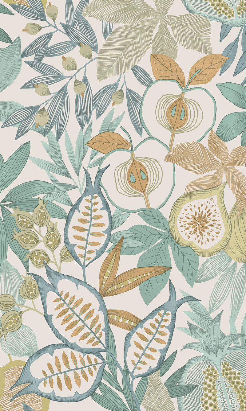 Sage/Coral Serene Tropical Oasis Wallpaper R9602
