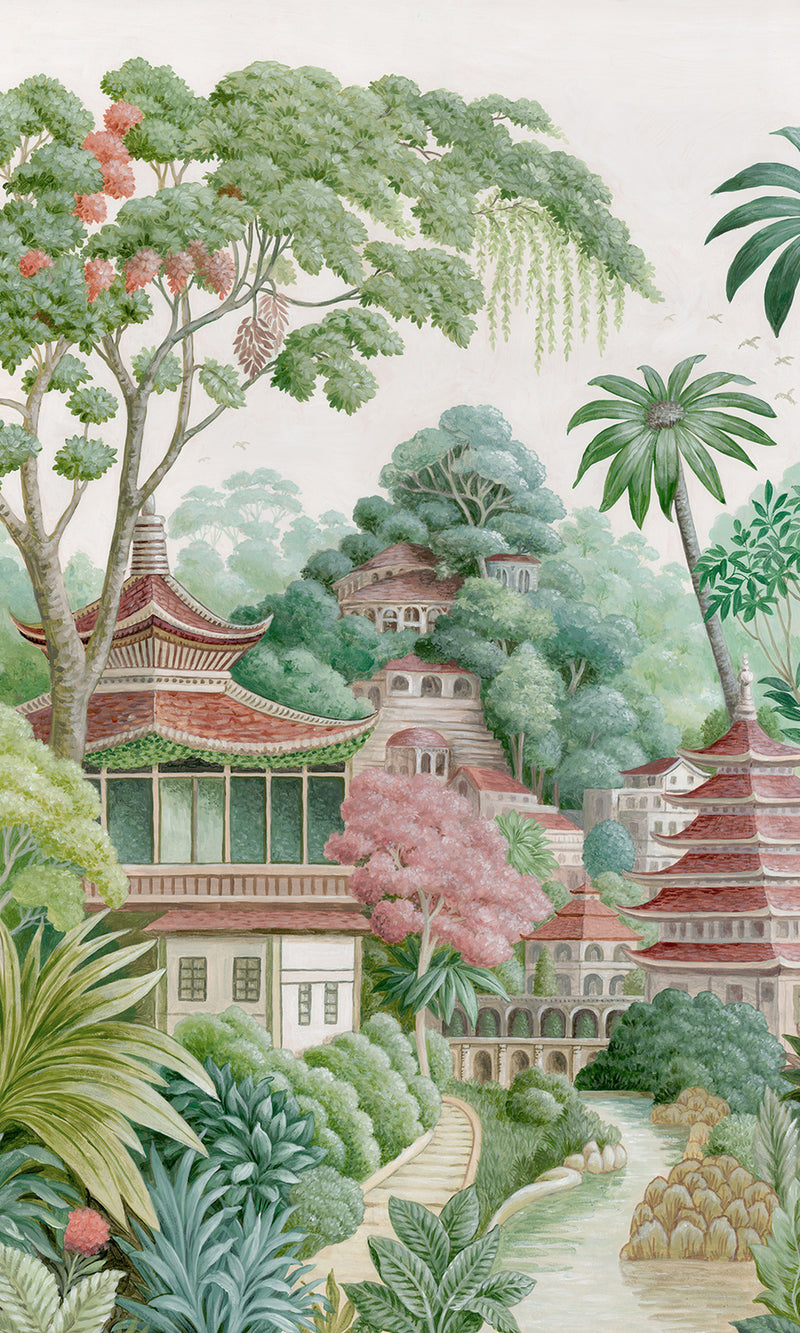 Multi Ornate Pagoda Landscape Wallpaper RM9045