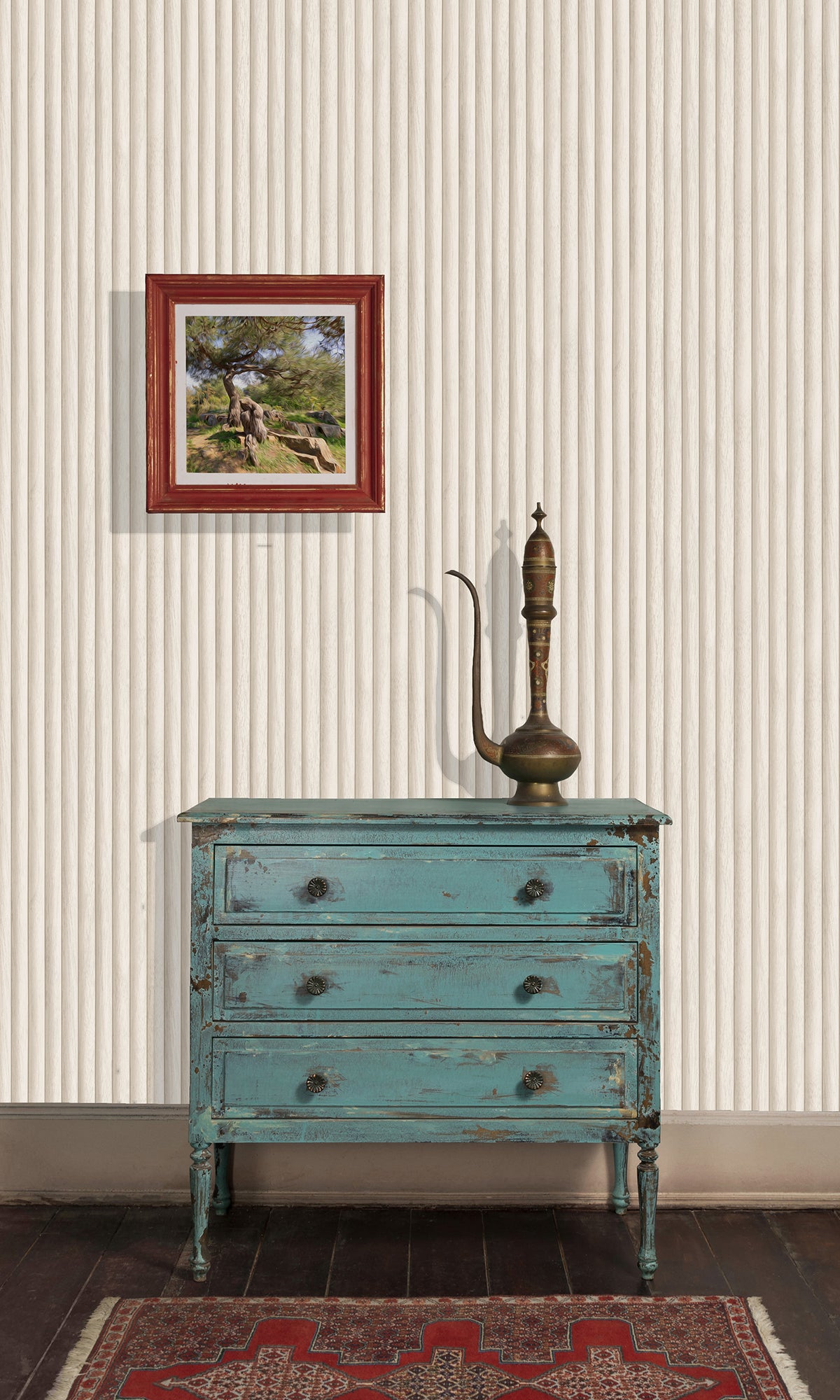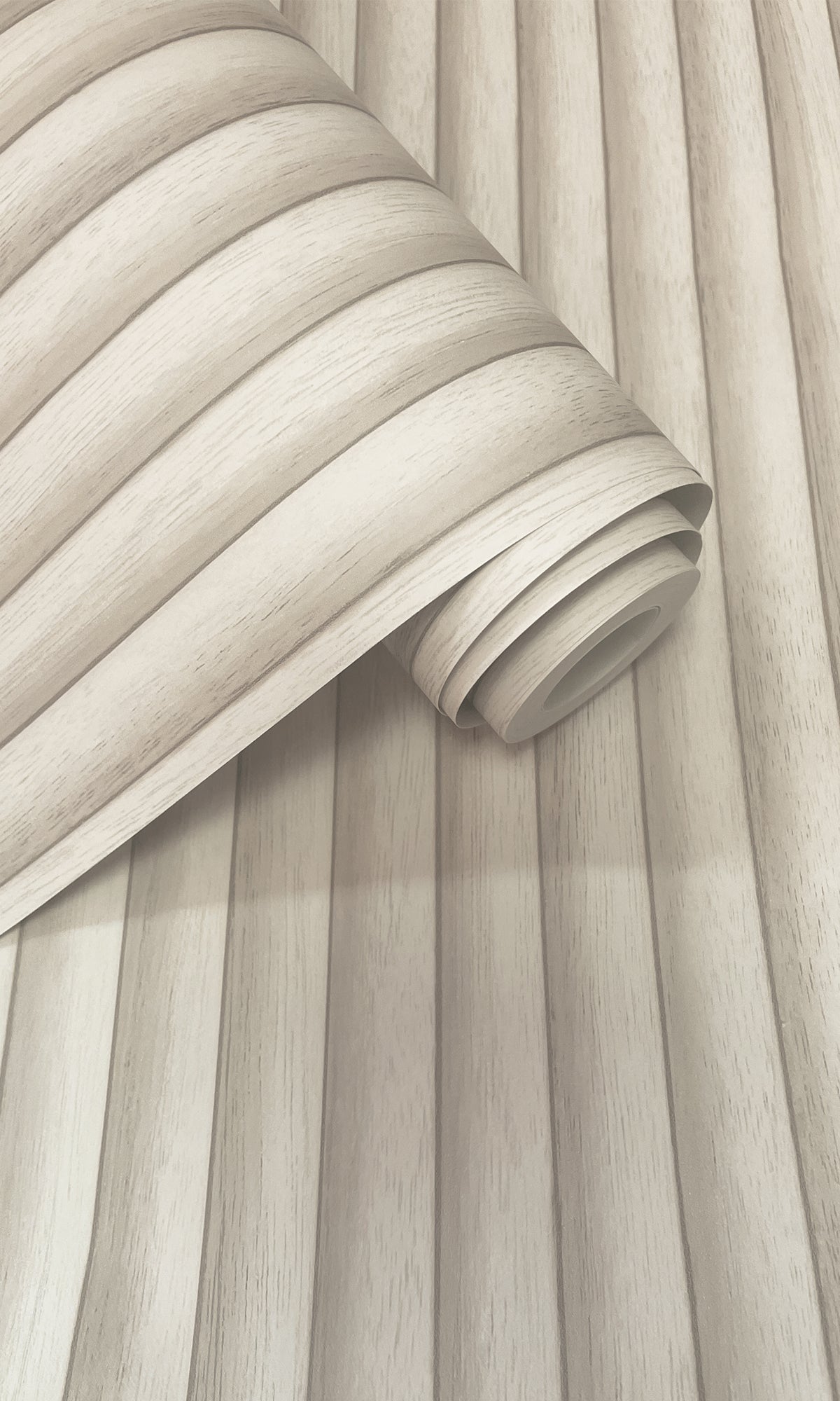 Introducing the Three Dimensional Stripe wallpaper, our take on the refined elegance inspired by Japanese minimalism. This wallpaper design focuses on the natural beauty of teak wood grown in Asia's rainforests. A sophisticated three-dimensional stripe created from the subtle bevel pattern brings a natural wood aesthetic into your home, creating a seamless blending of the outdoors into your interior space.