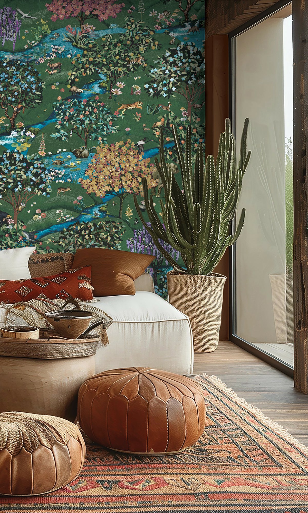 Why You’ll Love It: Perfect for bedrooms, living rooms, hallways, powder rooms, and children's rooms, this mural combines the beauty of nature with luxurious details, bringing a peaceful and wild energy to any space.