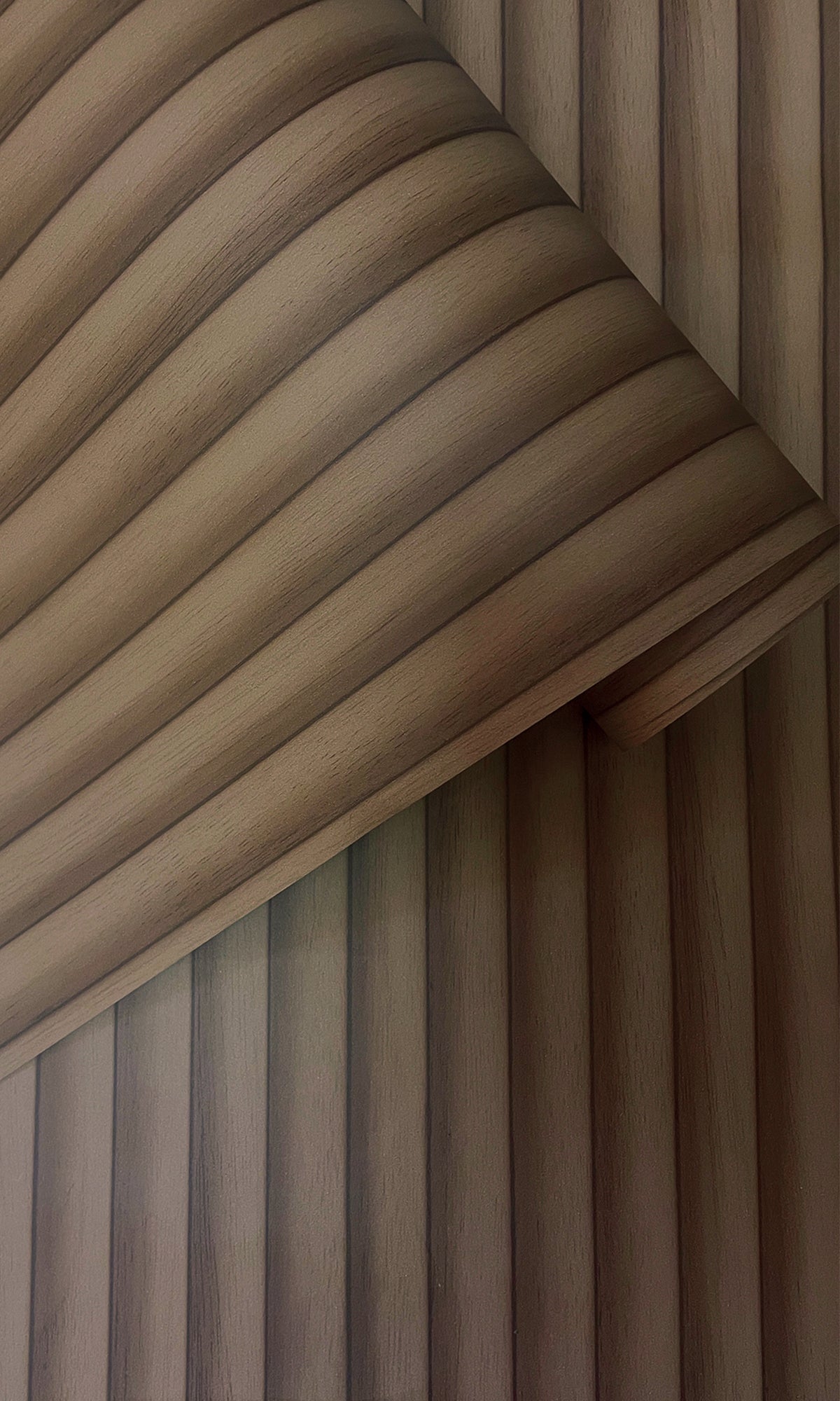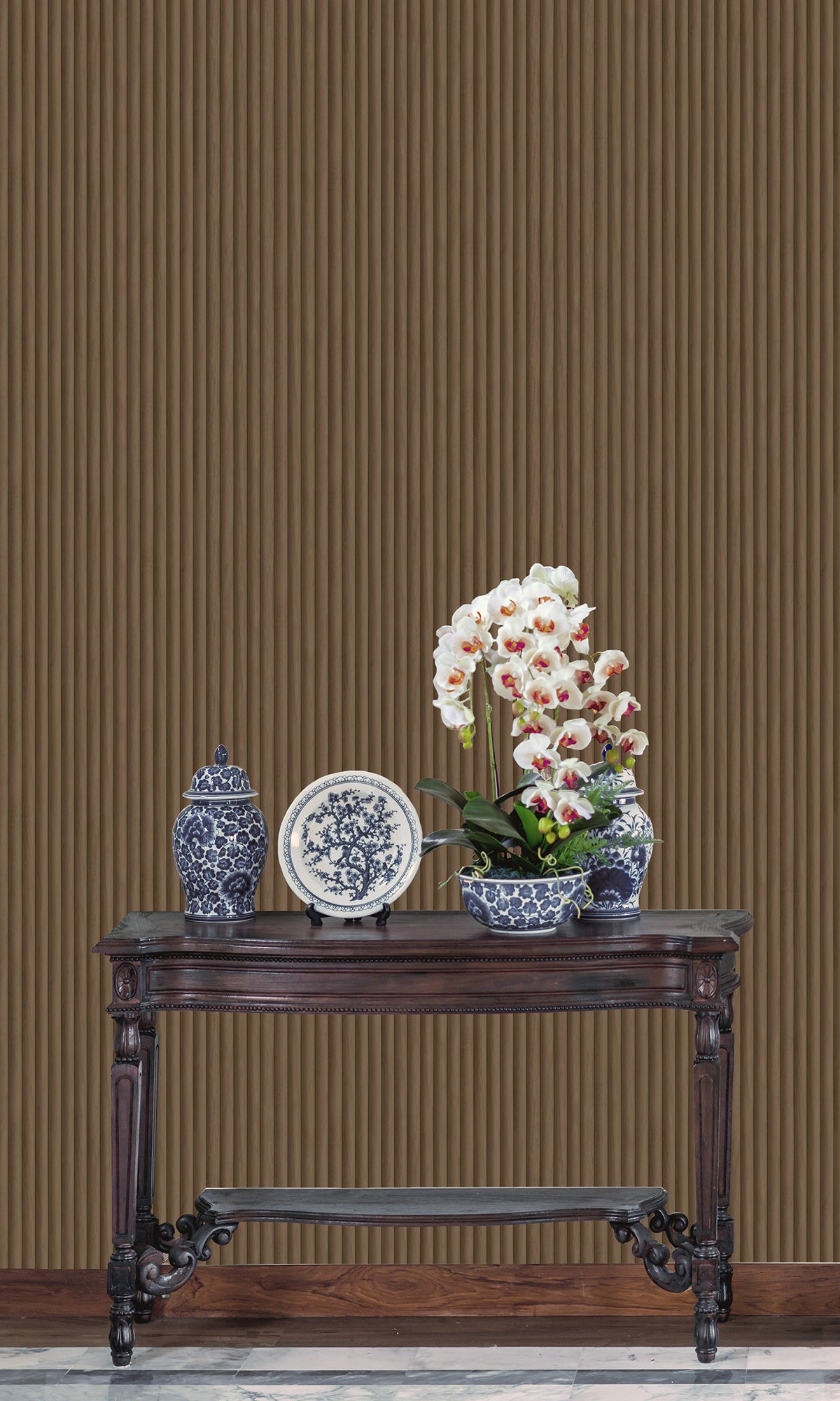 Introducing the Three Dimensional Stripe wallpaper, our take on the refined elegance inspired by Japanese minimalism. This wallpaper design focuses on the natural beauty of teak wood grown in Asia's rainforests. A sophisticated three-dimensional stripe created from the subtle bevel pattern brings a natural wood aesthetic into your home, creating a seamless blending of the outdoors into your interior space.