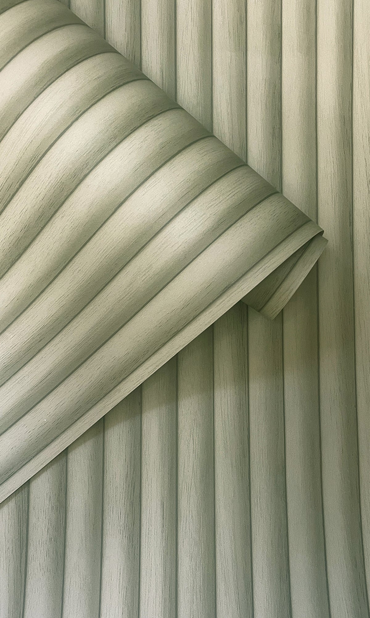 Introducing the Three Dimensional Stripe wallpaper, our take on the refined elegance inspired by Japanese minimalism. This wallpaper design focuses on the natural beauty of teak wood grown in Asia's rainforests. A sophisticated three-dimensional stripe created from the subtle bevel pattern brings a natural wood aesthetic into your home, creating a seamless blending of the outdoors into your interior space.