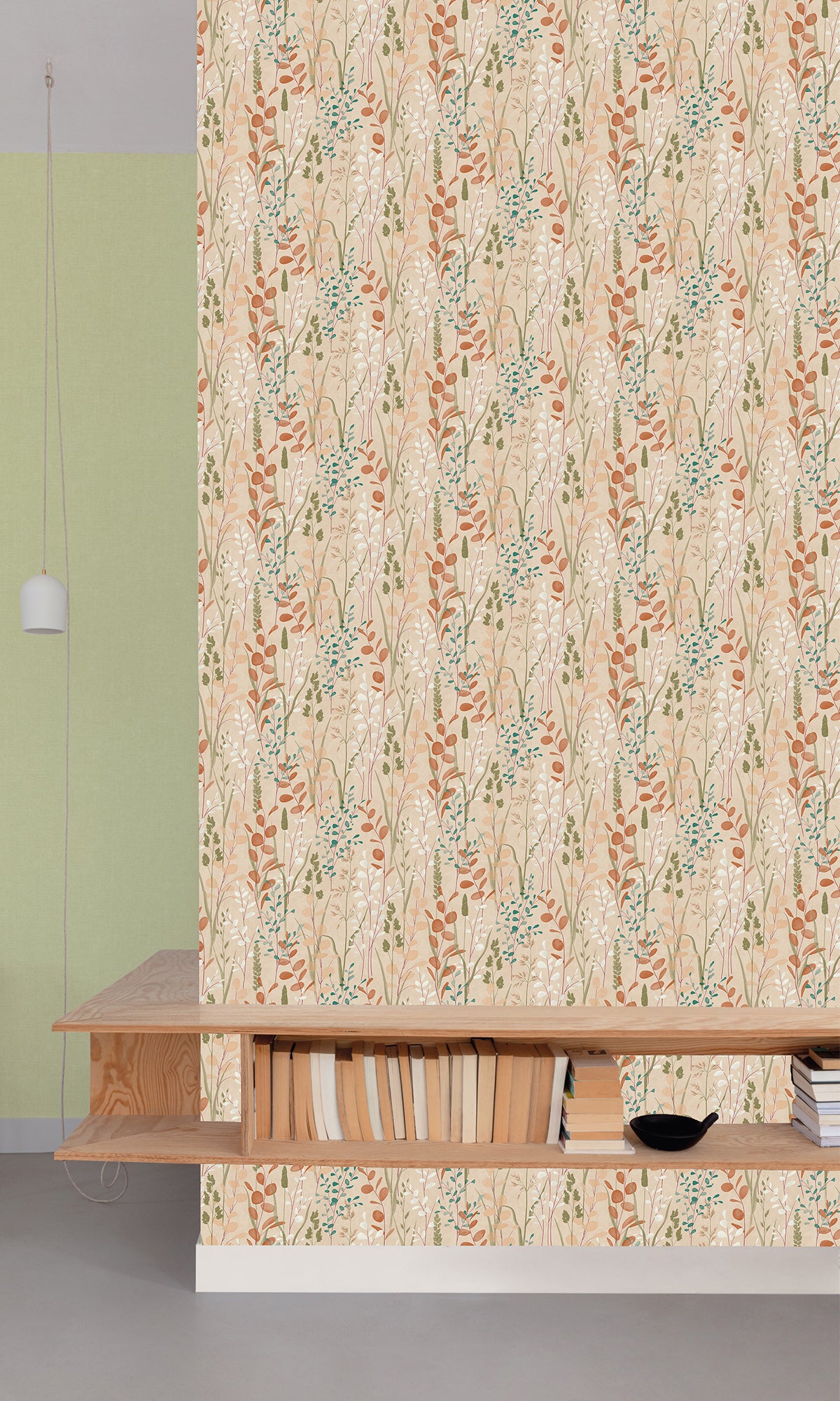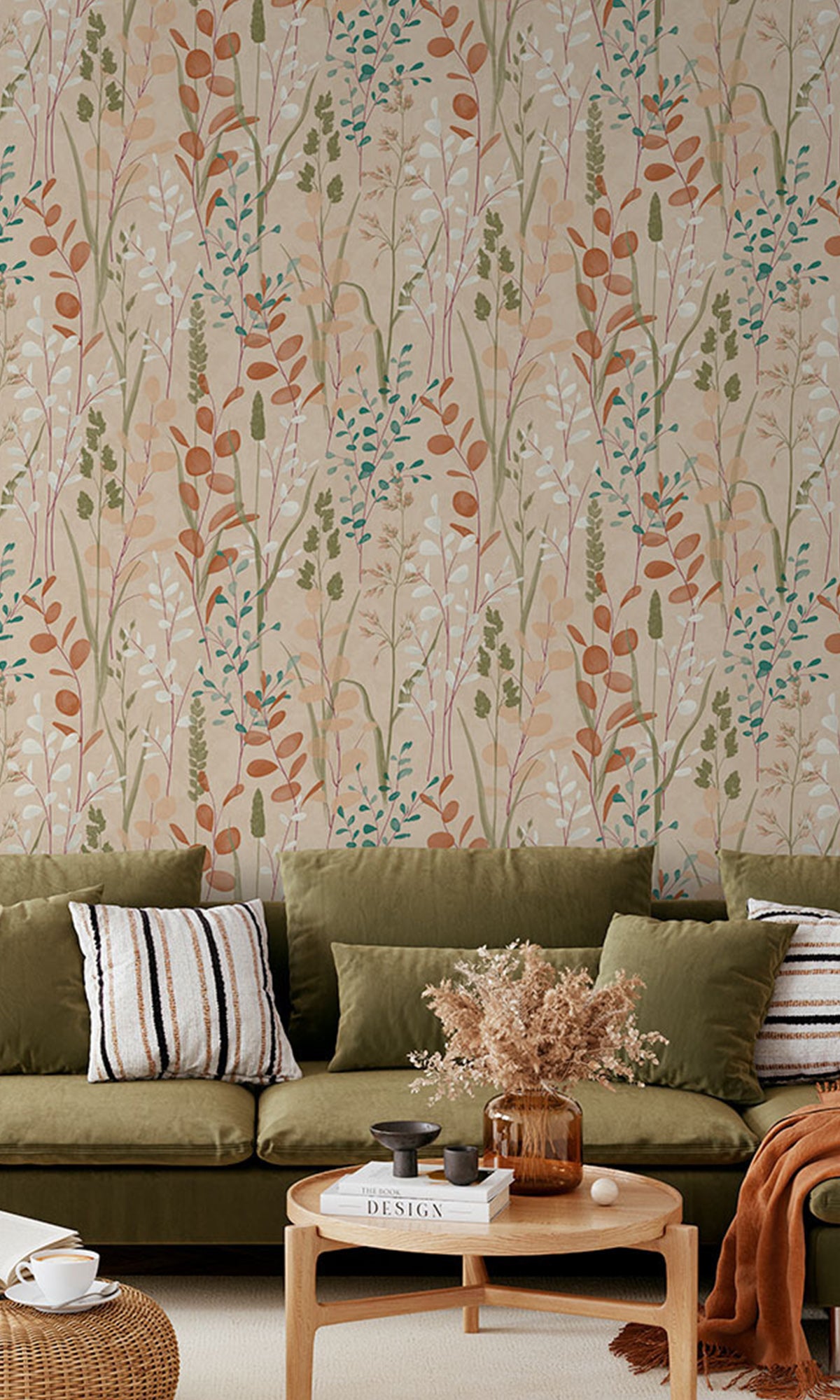 Crafted from durable vinyl on a non-woven paper substrate backing, it offers both beauty and practicality. The soft, organic details create a calm and inviting atmosphere, perfect for those who love a relaxed, nature-inspired aesthetic.