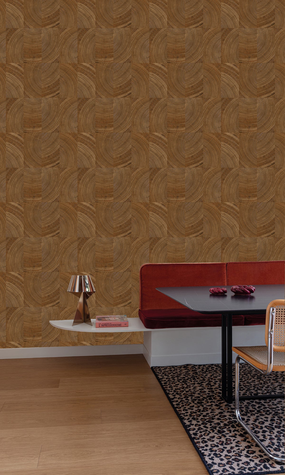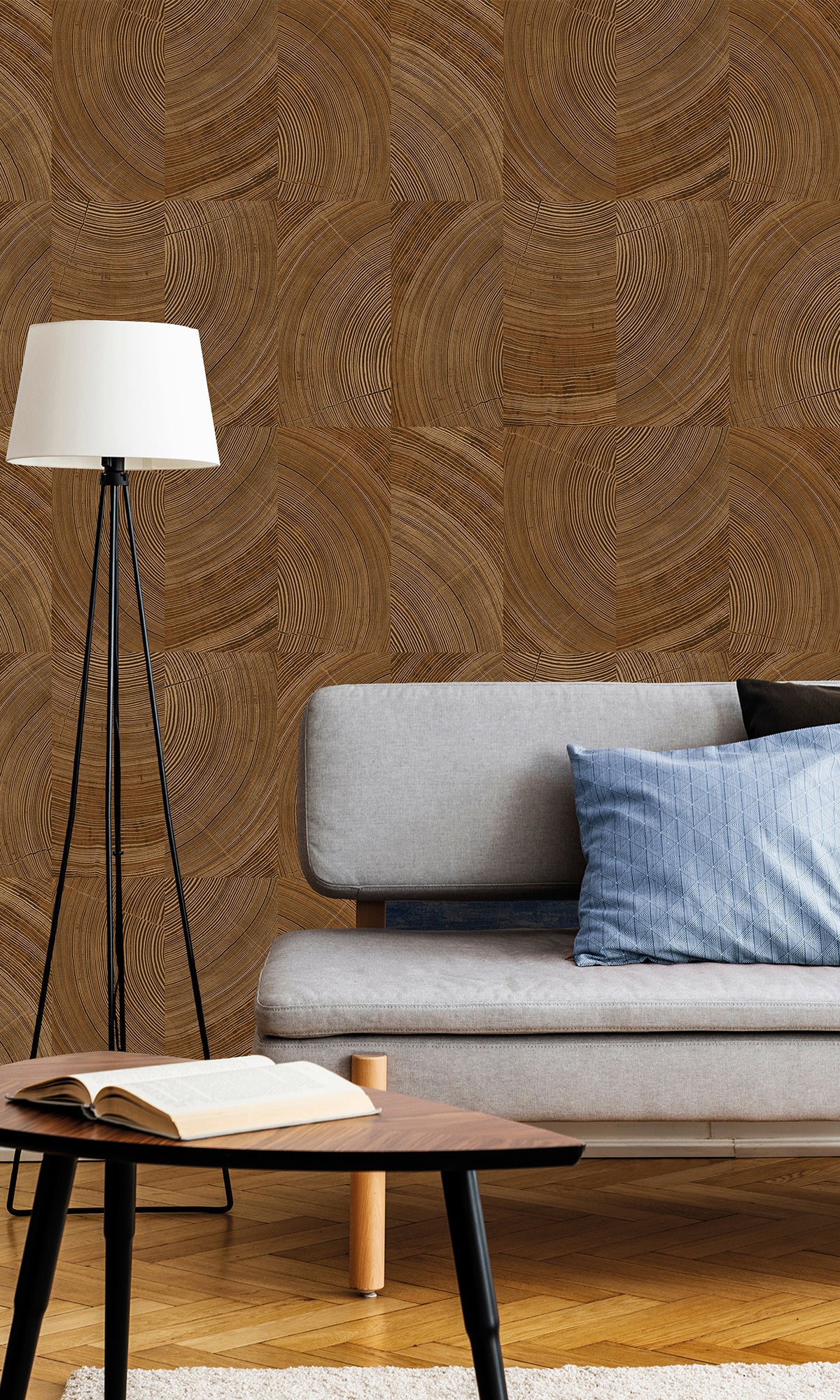 Bring the warmth and charm of a log cabin into your home with Collaged Tree Cross Section Wallpaper. Featuring a stunning collage of cross-cut tree rings, this textured design highlights the natural beauty of wood, adding a raw, organic touch to any space.
