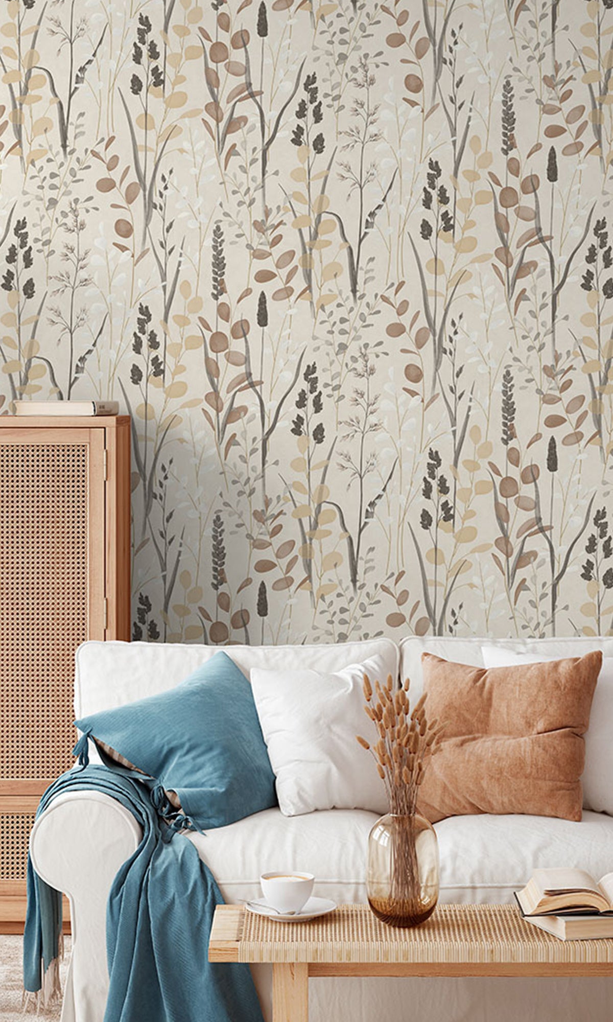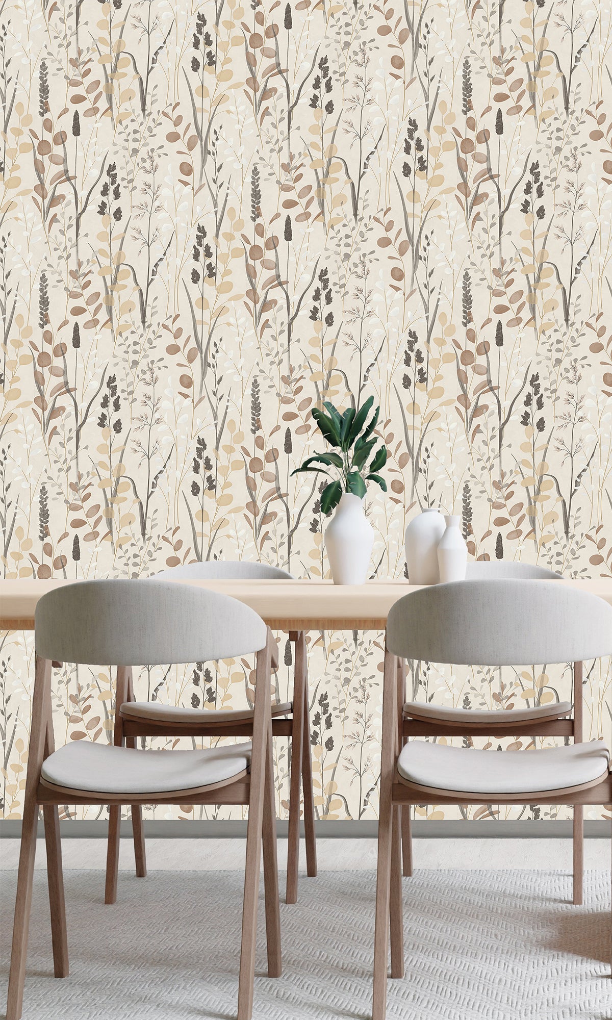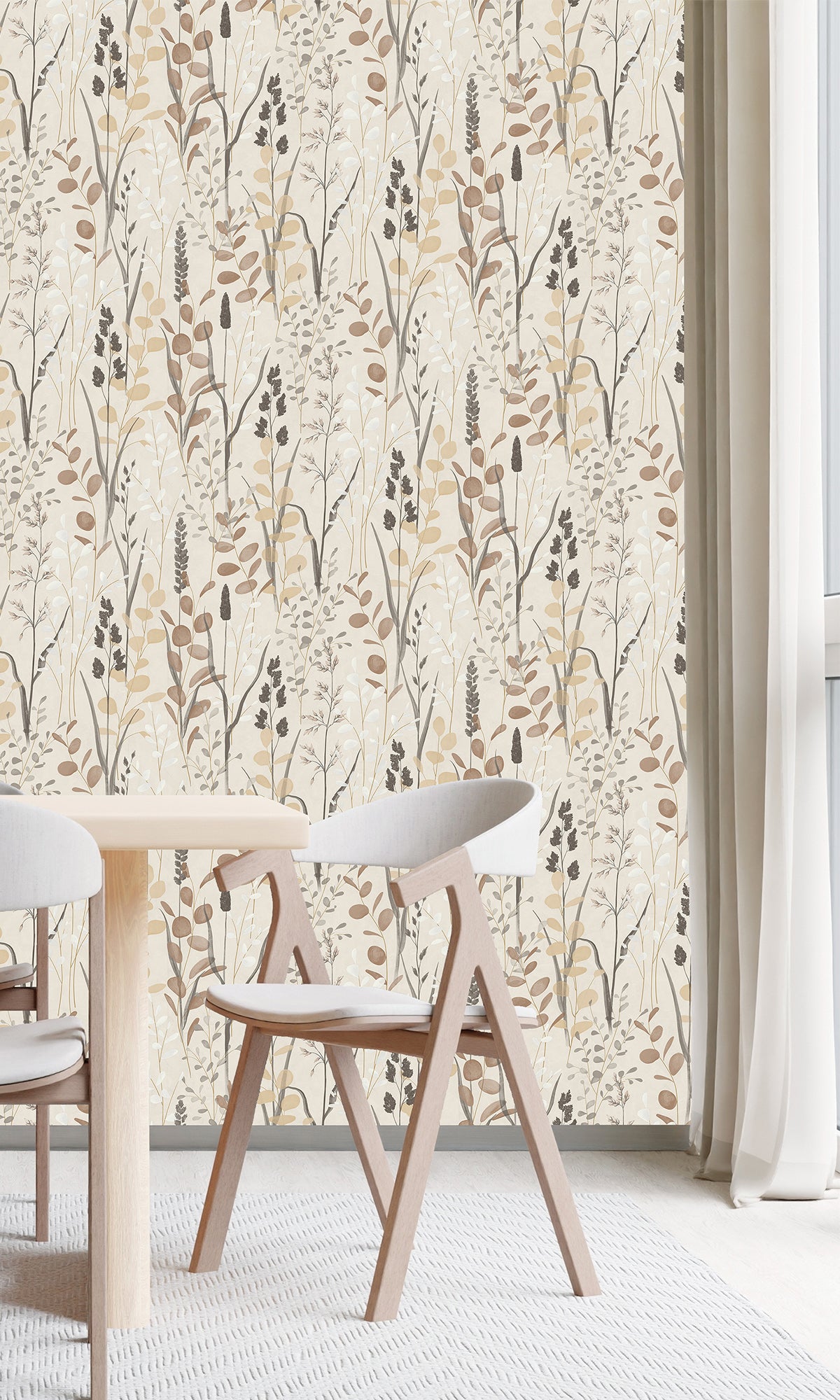 Crafted from durable vinyl on a non-woven paper substrate backing, it offers both beauty and practicality. The soft, organic details create a calm and inviting atmosphere, perfect for those who love a relaxed, nature-inspired aesthetic.