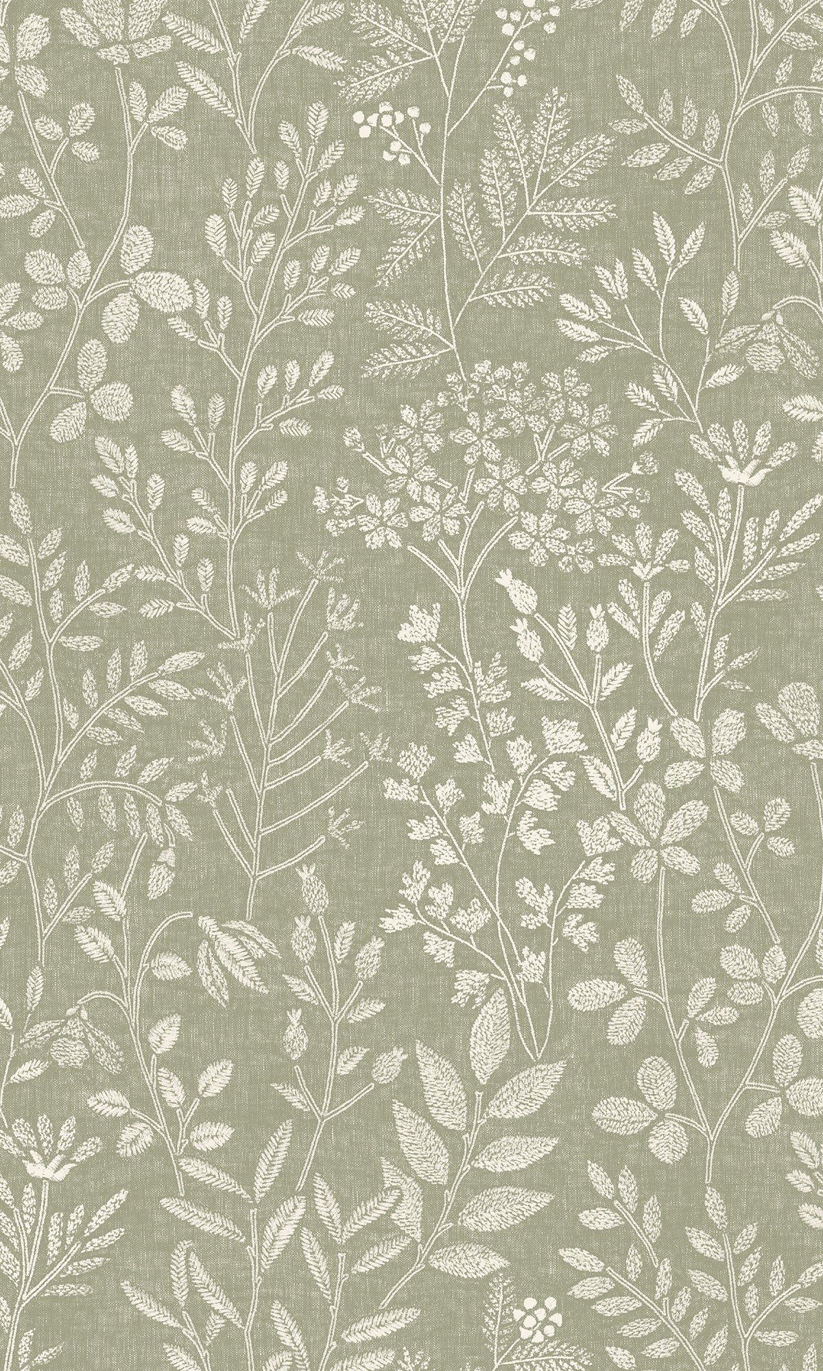Bring a touch of subdued natural beauty to your space with Geometric Collage Wallpaper. Featuring wildflowers and leaves block-stamped with an embroidery effect across a basketweave-textured surface, this design creates a soft, calming ambiance with a hint of artistic charm.