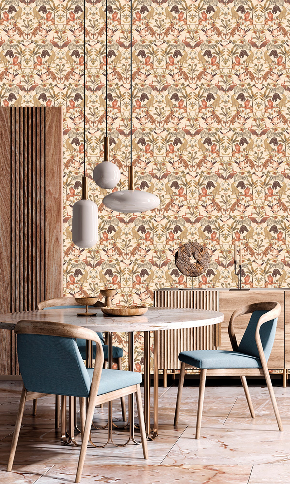 With good lightfastness, the vibrant animal and botanical design will stay bright even in well-lit rooms. Whether you're creating a serene bedroom retreat, a sophisticated study, or a welcoming hallway, our Magic Animals Botanical wallpaper adds a touch of wonder and style to your home. Enjoy the perfect blend of charm and practicality with this unique wallpaper.