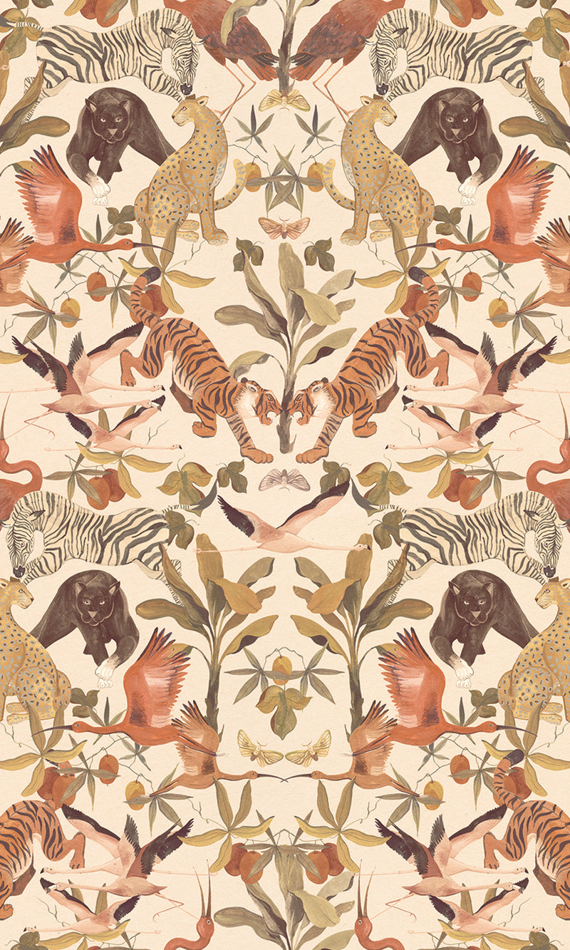Grey and Charcoal Painted Animal Print Wallpaper R7669