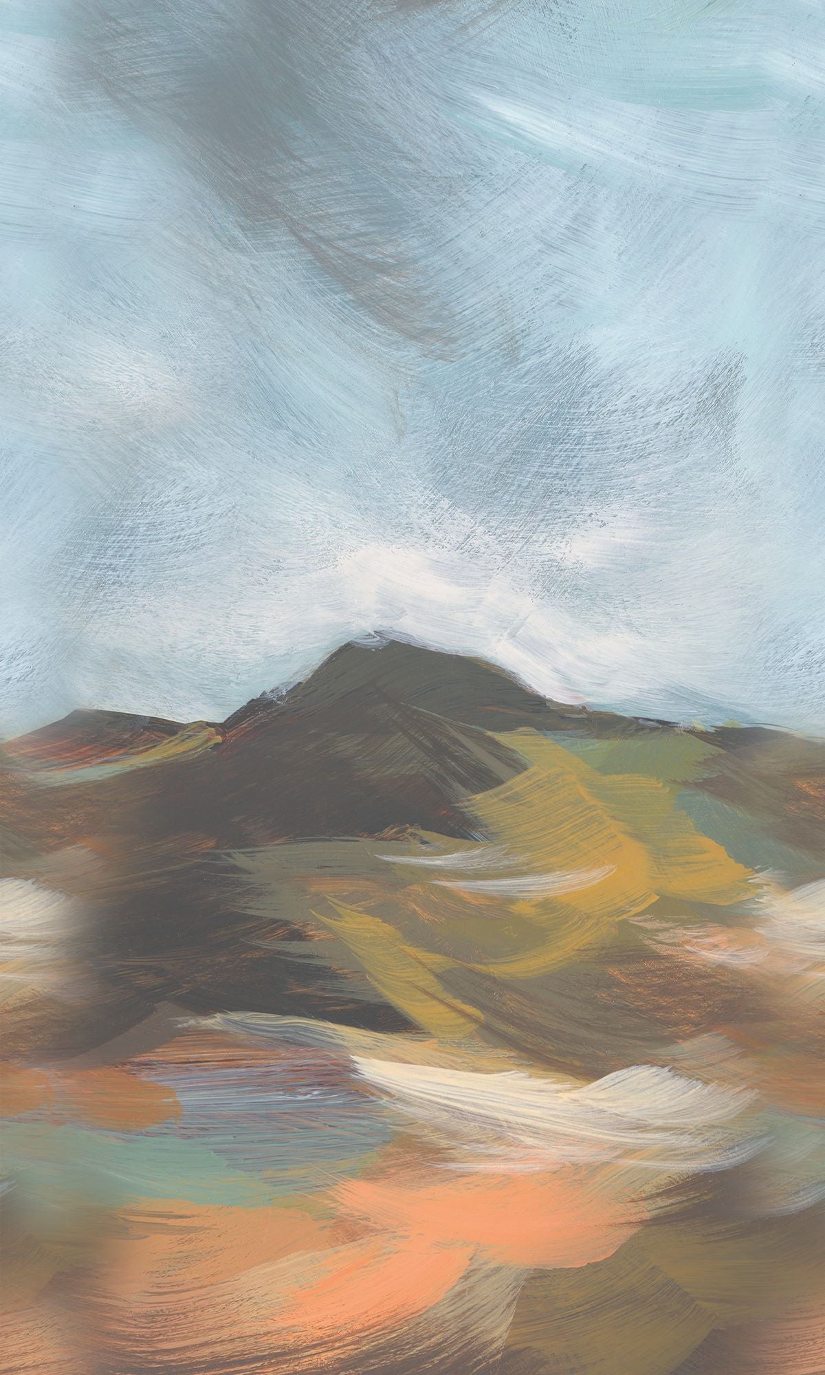Muskmellon & Bright Umber Mountain Landscape in Watercolor Wallpaper RM9074