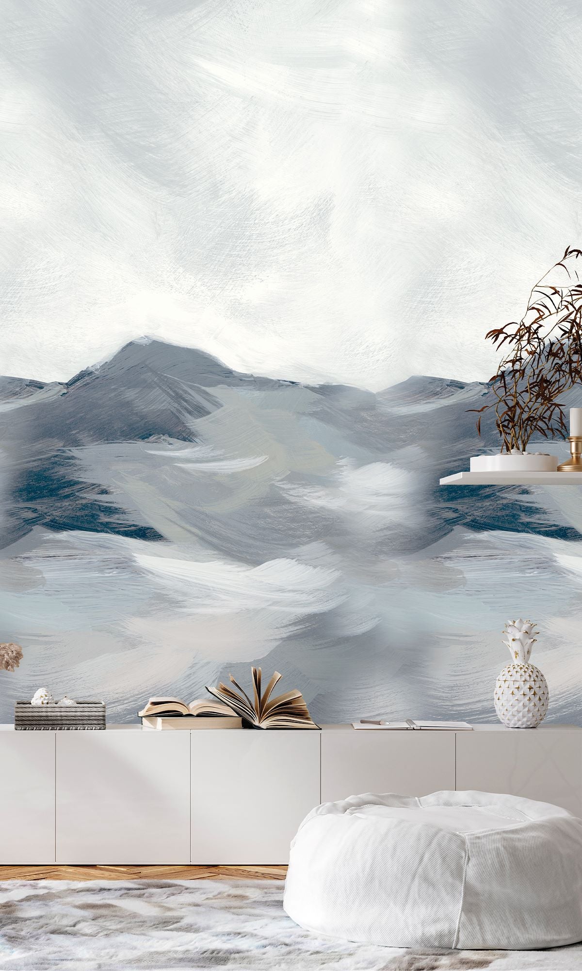 This Mountain Landscape in Watercolor mural wallpaper is not just artsy, it’s like watercolor poetry—you get these dreamy, layered peaks and atmospheric swooshiness that sorta make you forget you’re even indoors.