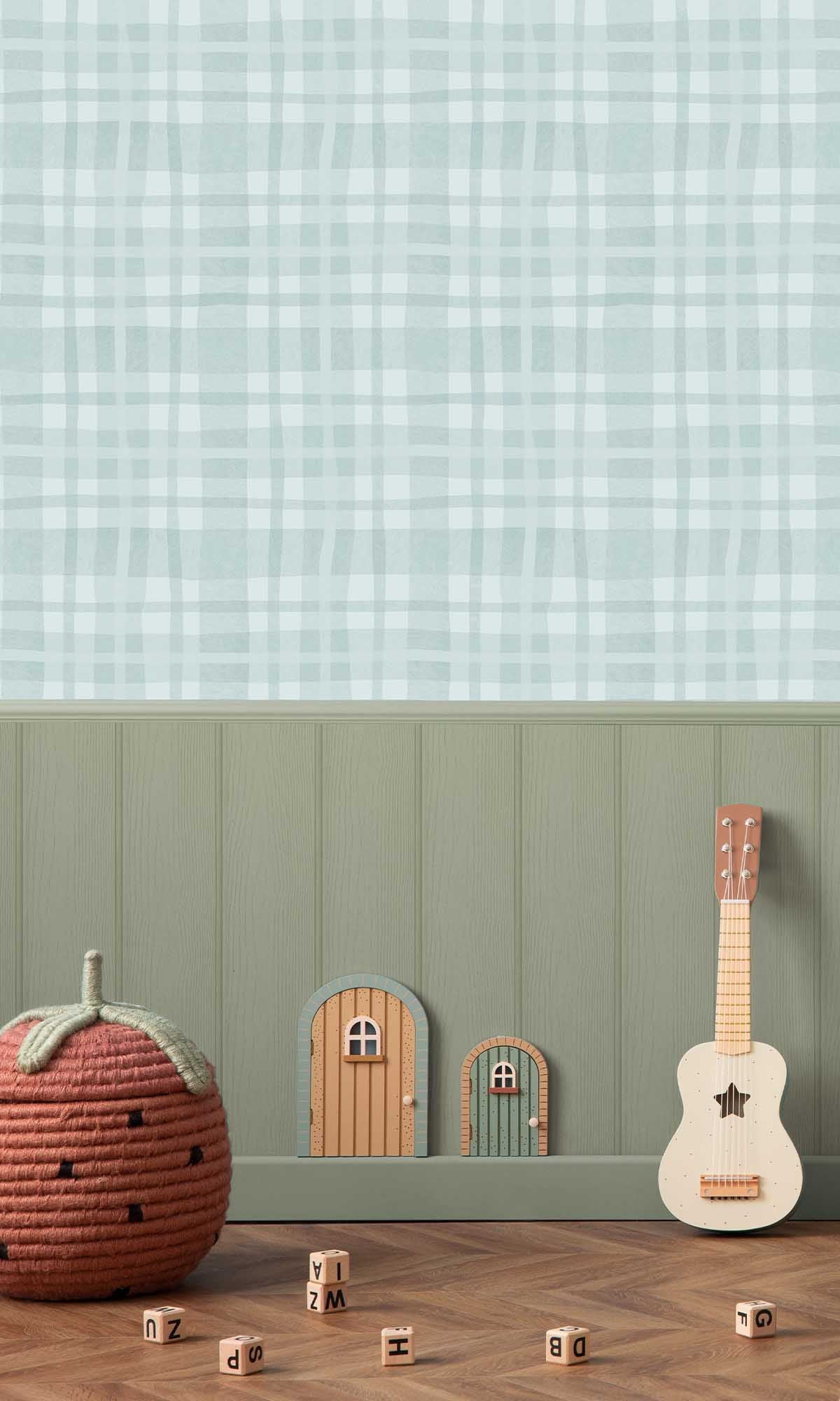 Sky Blue Soft Watercolor Plaid Wallpaper R10008
