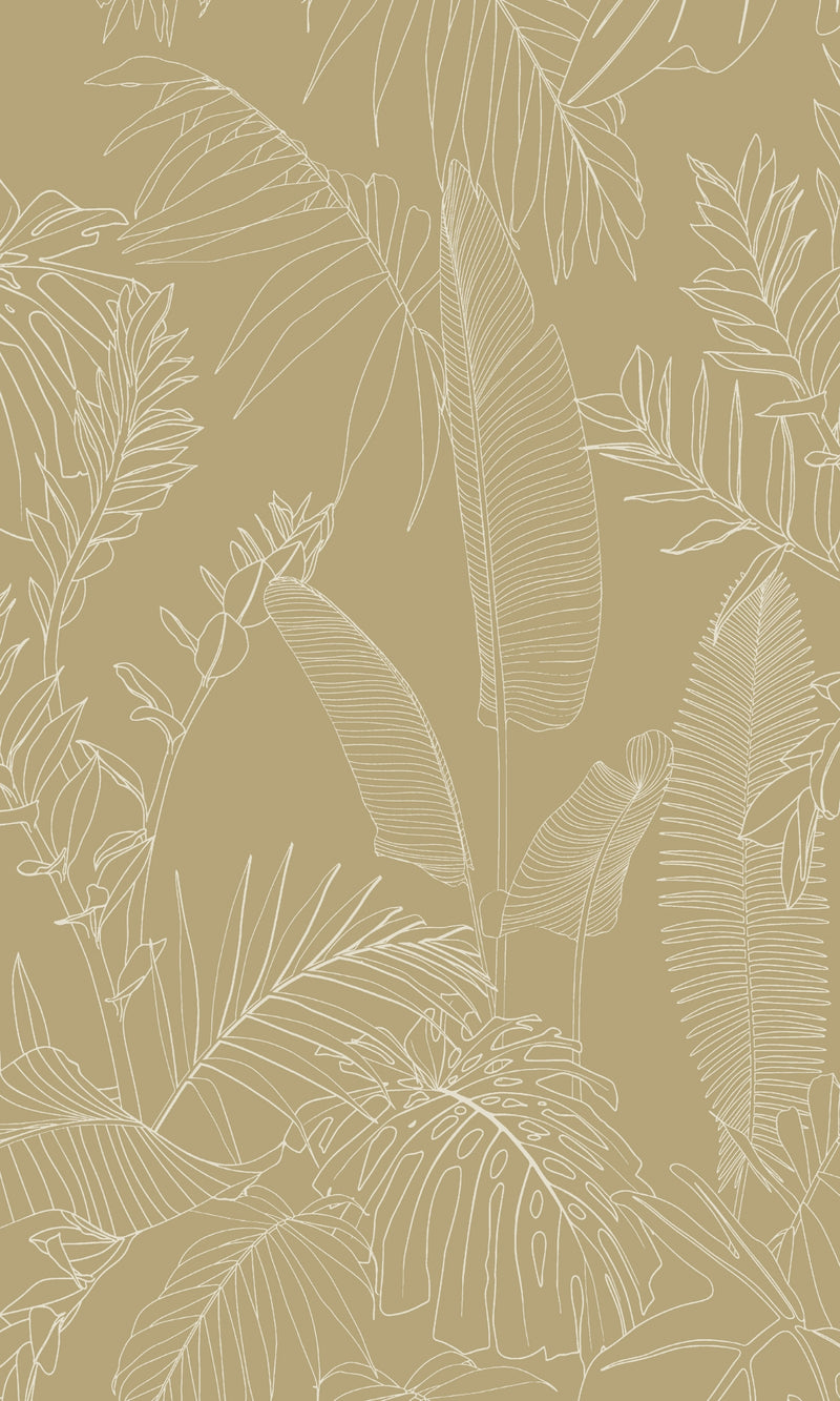 Gold Minimalist Tropical Leaves Wallpaper R9314