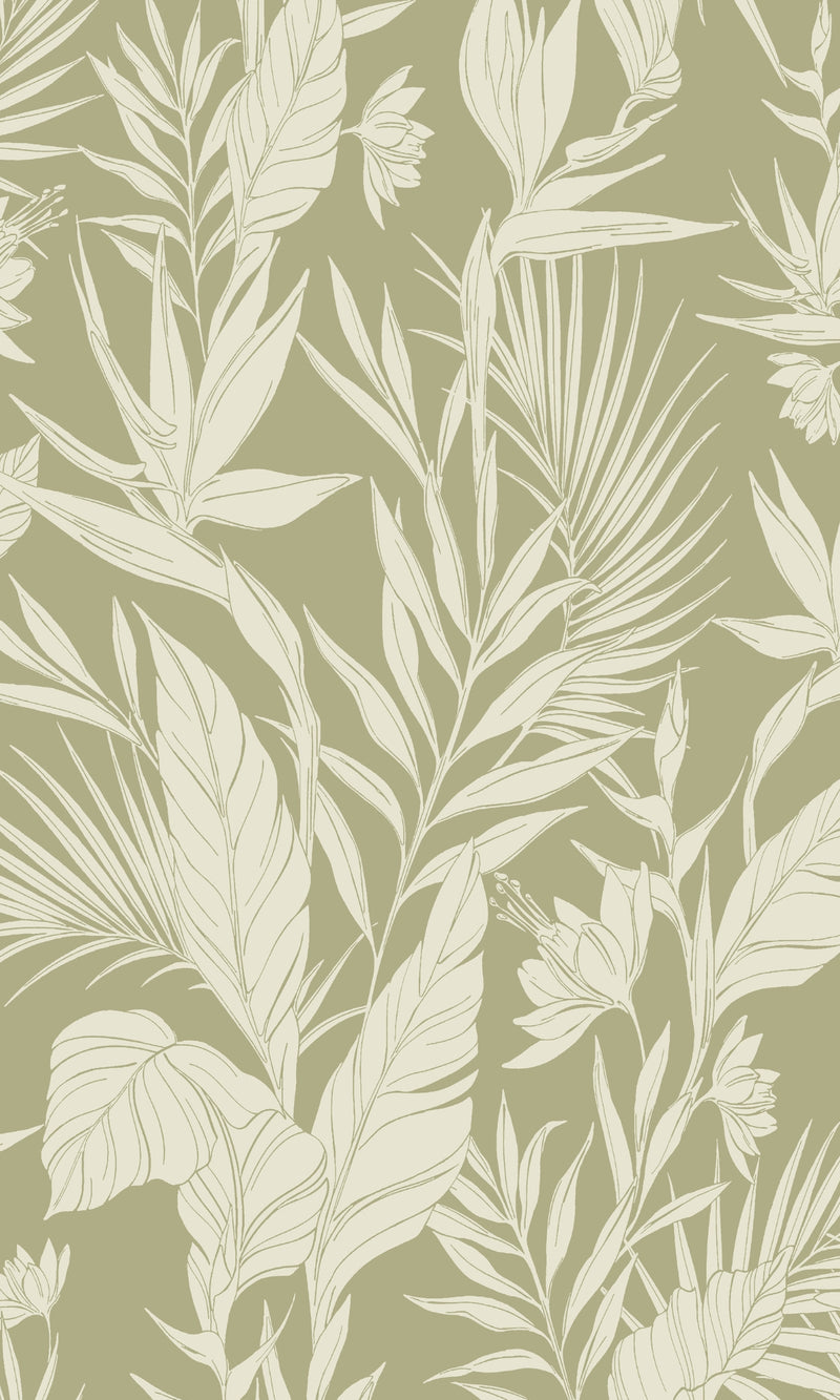 Beige All Over Branches & Leaves Tropical Wallpaper R9311