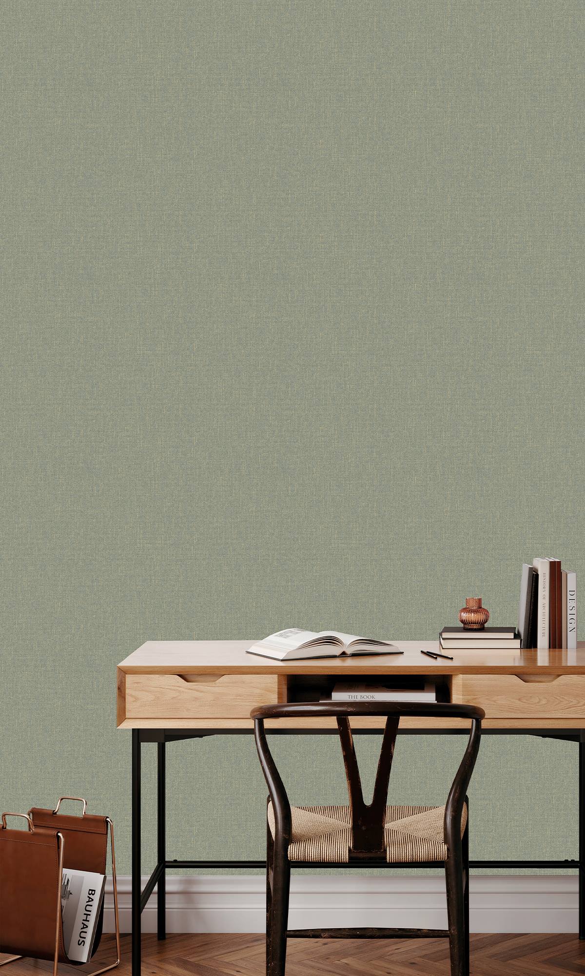Thyme Green Scratched Fabric Print Wallpaper R9920