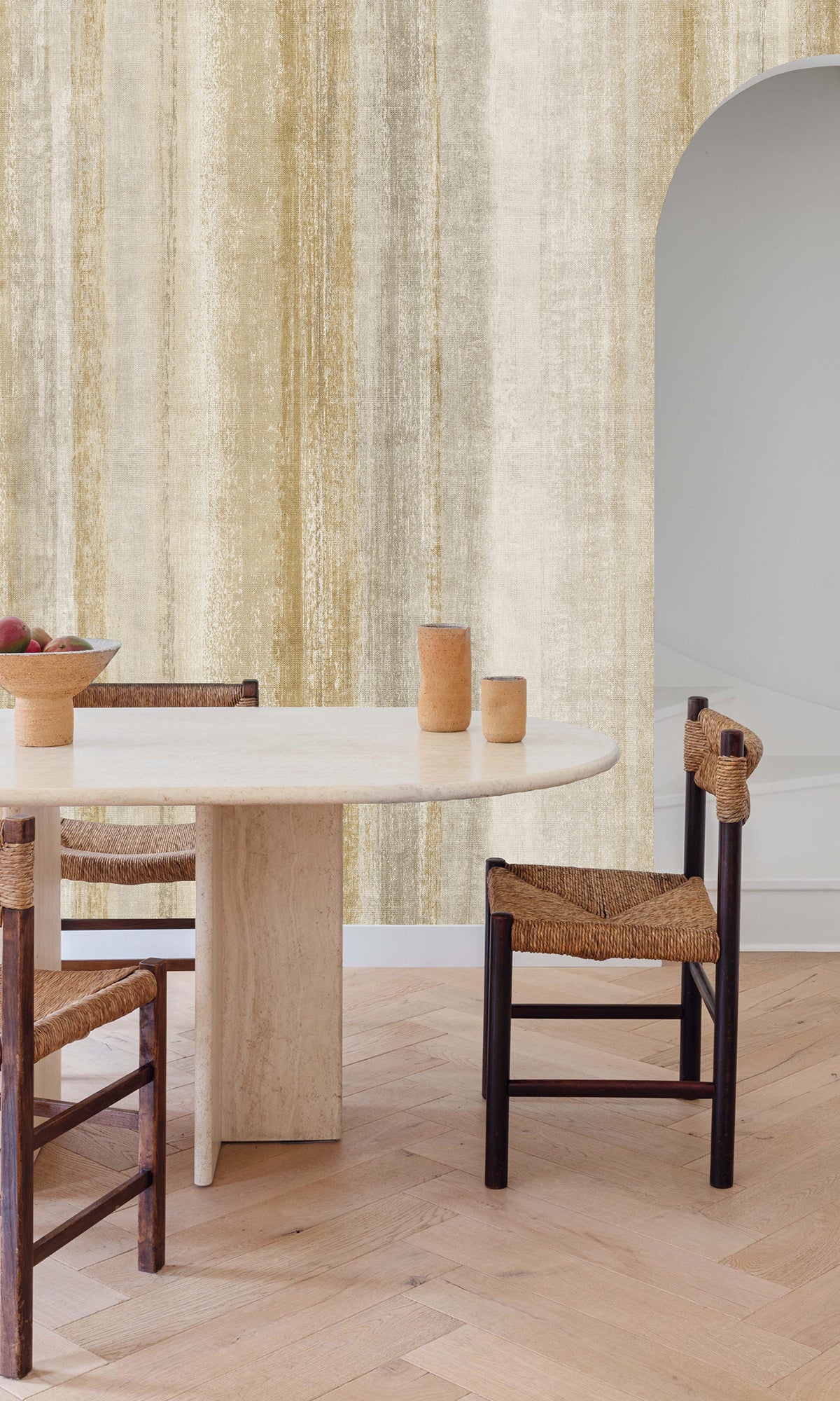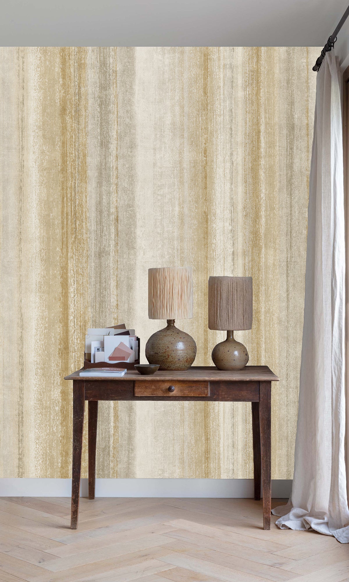 Made from PVC Free material on a non-woven paper substrate backing, this wallpaper offers the beauty of a hand-painted design with the durability and ease of maintenance that vinyl provides. The weathered effect adds depth and character, creating a sophisticated yet casual atmosphere that works seamlessly in both contemporary and rustic spaces.
