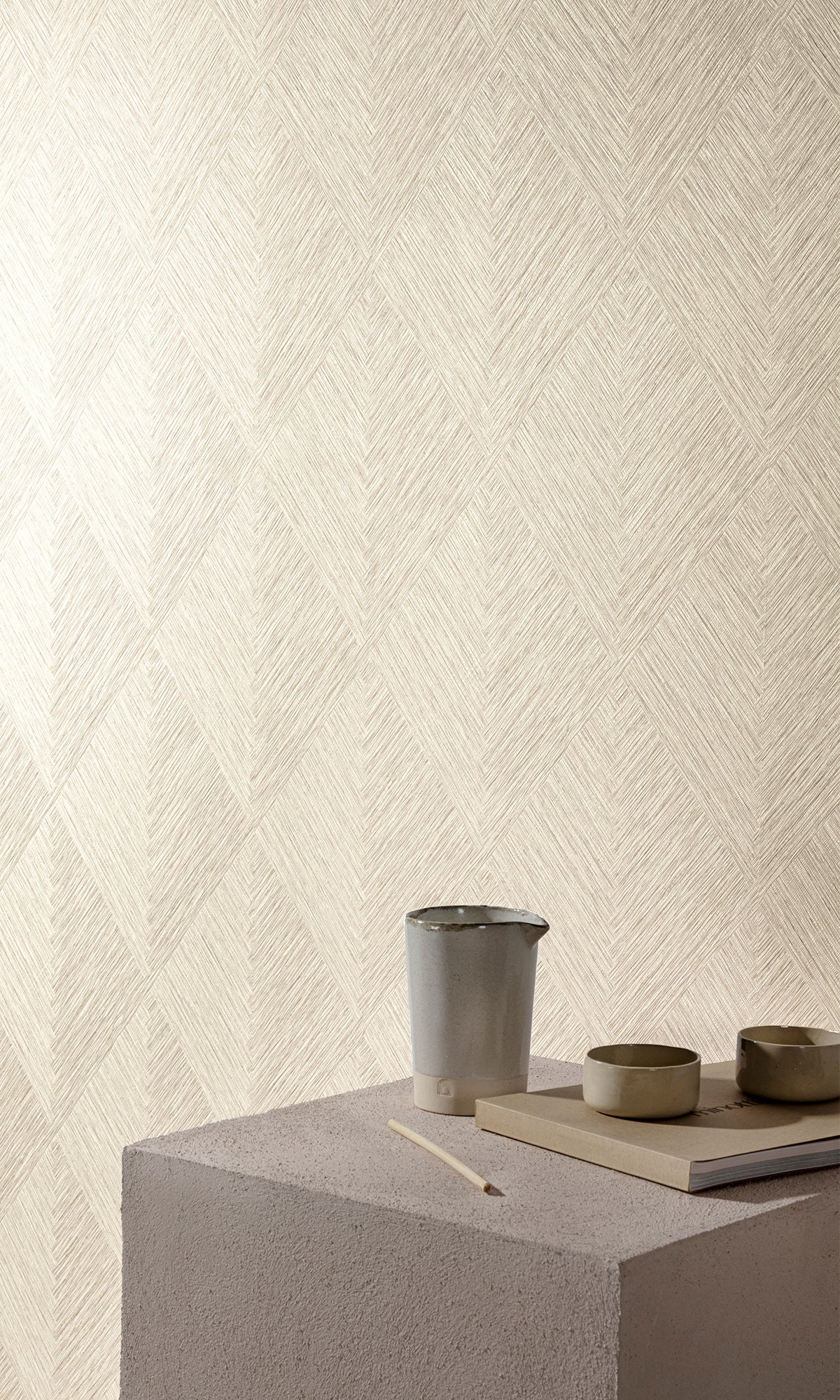 Reimagine your space with the warm, inviting charm of Tiled Basketweave Wallpaper. This textured wallpaper features strips of flattened grass blades intricately woven together in a beautiful diamond pattern, recreating the cozy yet elegant feel of a tropical home.