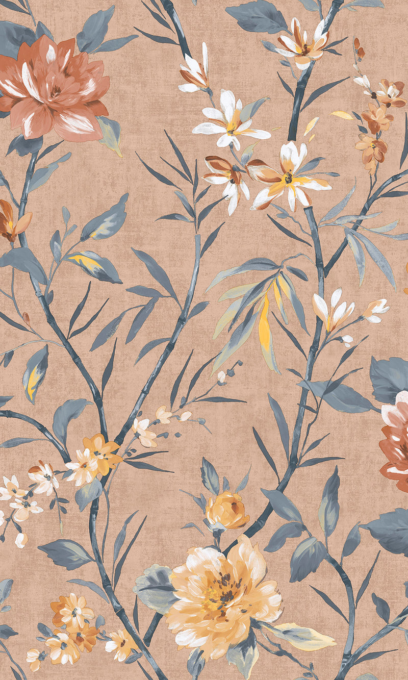 Coral Trailing Camelia Flowers Wallpaper R9618