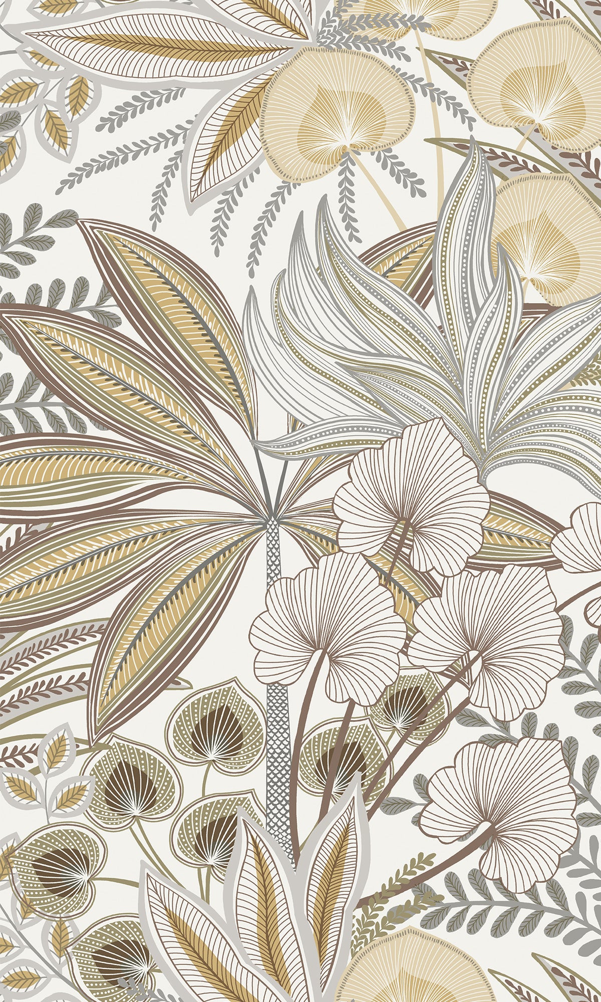 Grain Brown Tropical Ferns and Flowers Wallpaper R9727