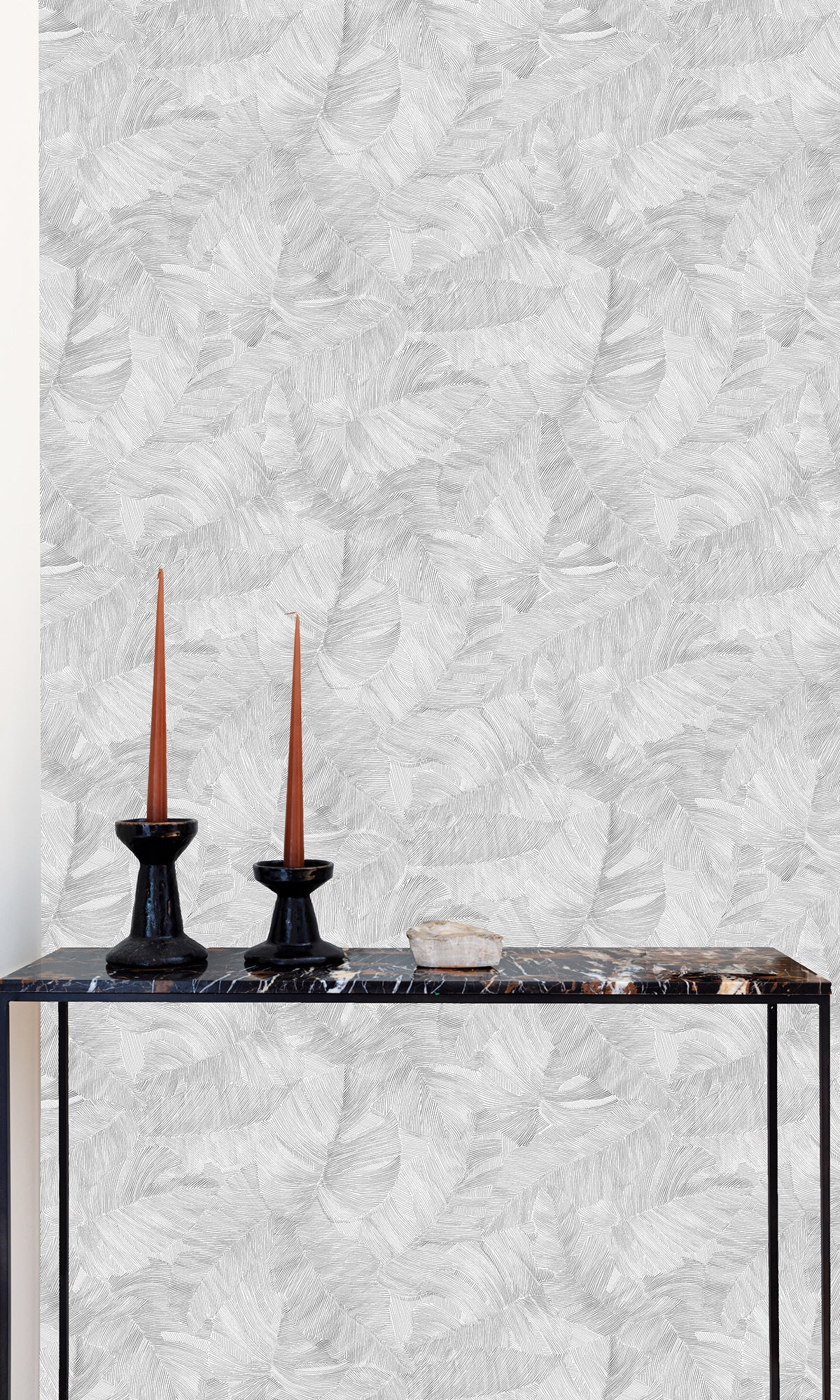 Embrace sophisticated minimalism with All-Over Monstera Leaves Wallpaper. Featuring overlapping monstera leaves delicately etched across a textured canvas, this design brings a sense of understated elegance to any space.