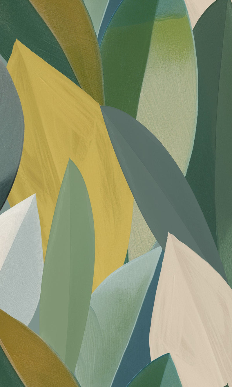 Catalina Green & Golden Nugget Overlapping Watercolor Leaves Wallpaper RM9080