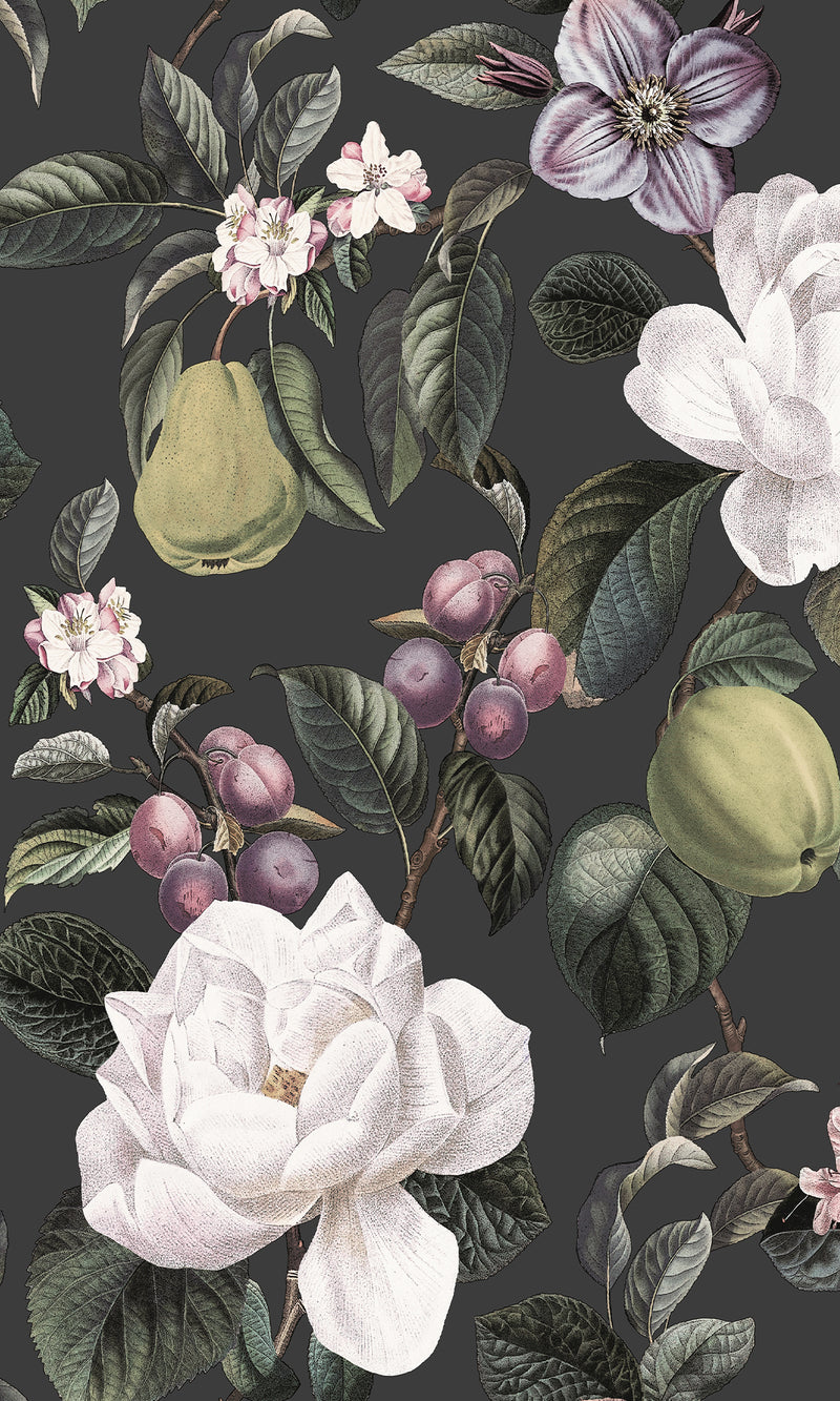 Charcoal Pear & Blossom Elegance Wallpaper R9641